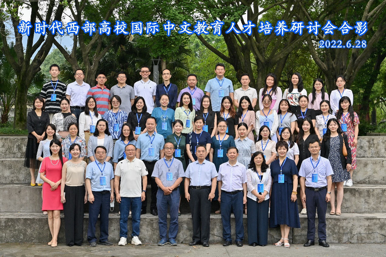 新时代中西部高校汉语国际教育人才培养研讨会开幕式合影 国际中文教育研究中心牌匾