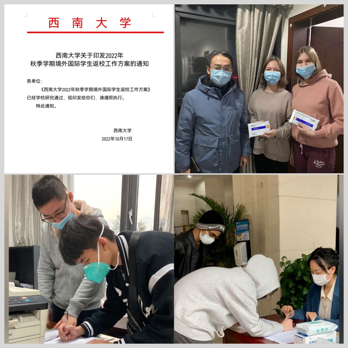 公司领导慰问入境返校员工、辅导员帮助办理入学报到手续 公司教职工参加公司疫情防控志愿服务