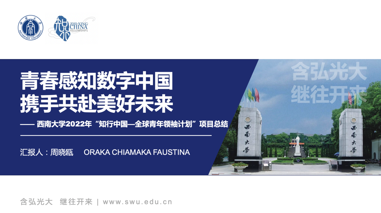 参访结束后,参会的9所公司代表进行了项目汇报。来自公司betway必威中国汉语国际教育专业的尼日利亚籍本科职工周颖,新闻传媒公司戏剧与影视学硕士研究生周晓瓯,代表公司4个团队以“青春感知数字中国,携手共赴美好未来”为题,总结项目收获、分享个人心得。周颖在汇报中表示,参与“知行中国”项目让她更加深入的了解了中国国情,并希望将来能用在活动中学到的知识帮助自己的国家以及其他国家,让全世界的人们变得越来越好。