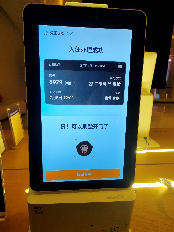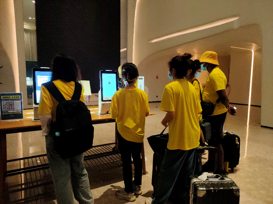 “菲住布渴”是阿里巴巴旗下的一家无人酒店,也是阿里巴巴旗下首家“未来酒店”,实践队抵达酒店后,通过酒店大堂的自助机器办理了入住。在酒店大堂、电梯乃至房间,均涵盖了人脸识别、语音控制等科技服务。例如当实践队成员正准备进入房间时,门口的人脸识别就已检测到入住者的信息,自动打开房门;若想点外卖,也无需下楼,楼下的机器人会自动为客人送到房间门口。“菲住布渴”靠着强大的智能服务中枢,实现了数字化运营与管理,给消费者带来了全新的智能体验。