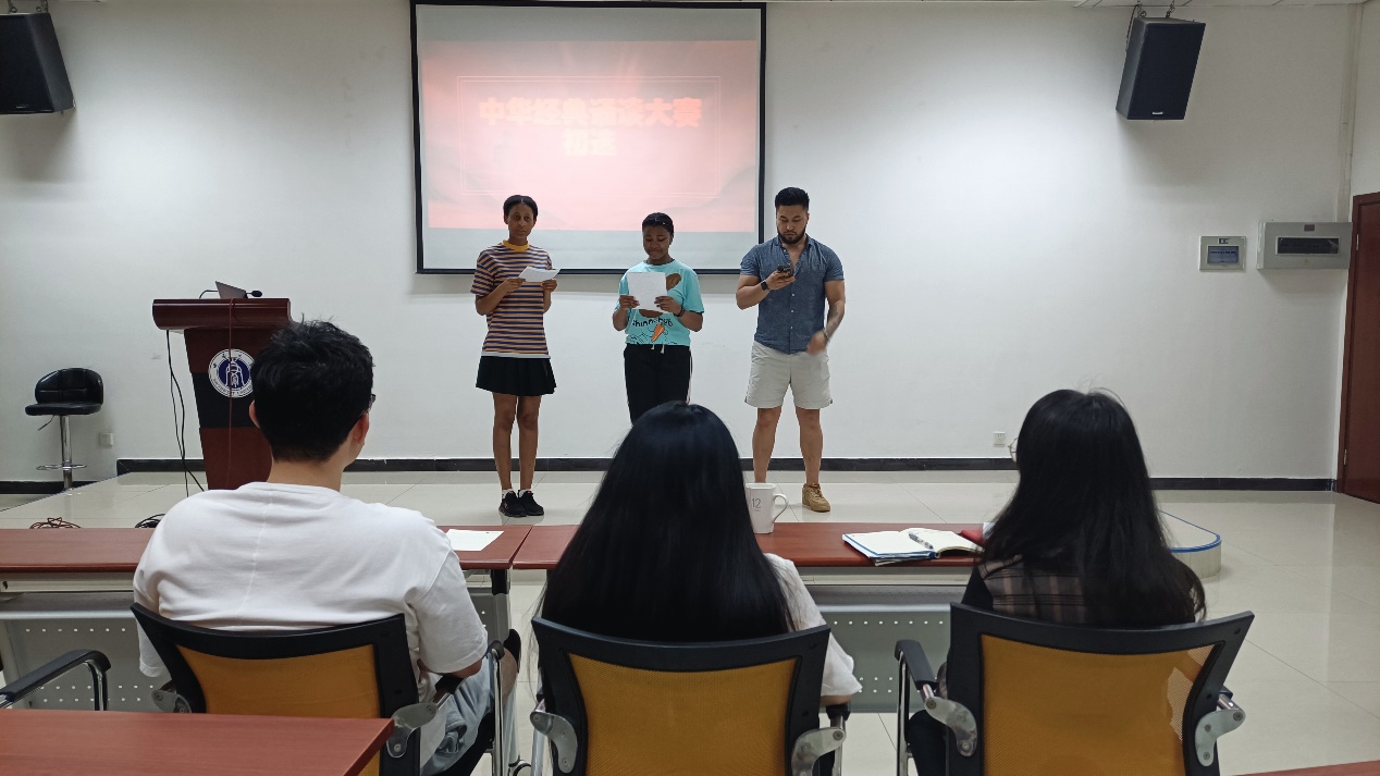 评委老师冯雪、刘妍芩,汉硕生周齐从语音标准度、朗诵技巧及能力、舞台表现力等几个方面,对个人和团体选手的水平进行了综合考查。此次选拔赛胜出的优秀选手将接受专业教师的集训辅导,并最终代表公司参加由重庆市教育委员会、重庆市语言文字工作委员会举办的“重庆市第八届中华经典诵读大赛”,期待公司国际学子在大赛中创造佳绩。