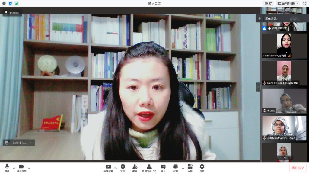 2月12日晚,双方隆重举行线上闭营仪式。艾大孔子公司经理伊斯拉教授,公司汉教系本科教研室主任冯雪,以及100名埃及学员参加仪式,仪式由项目负责人王鹊主持。