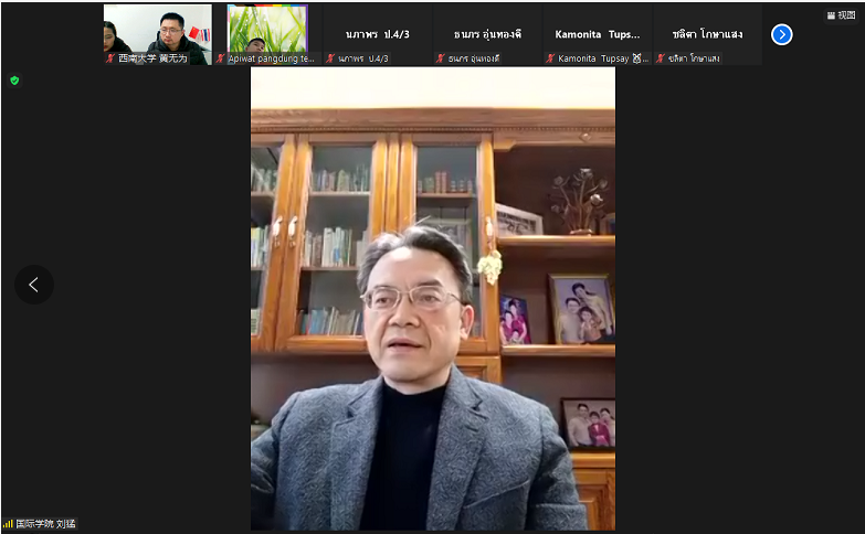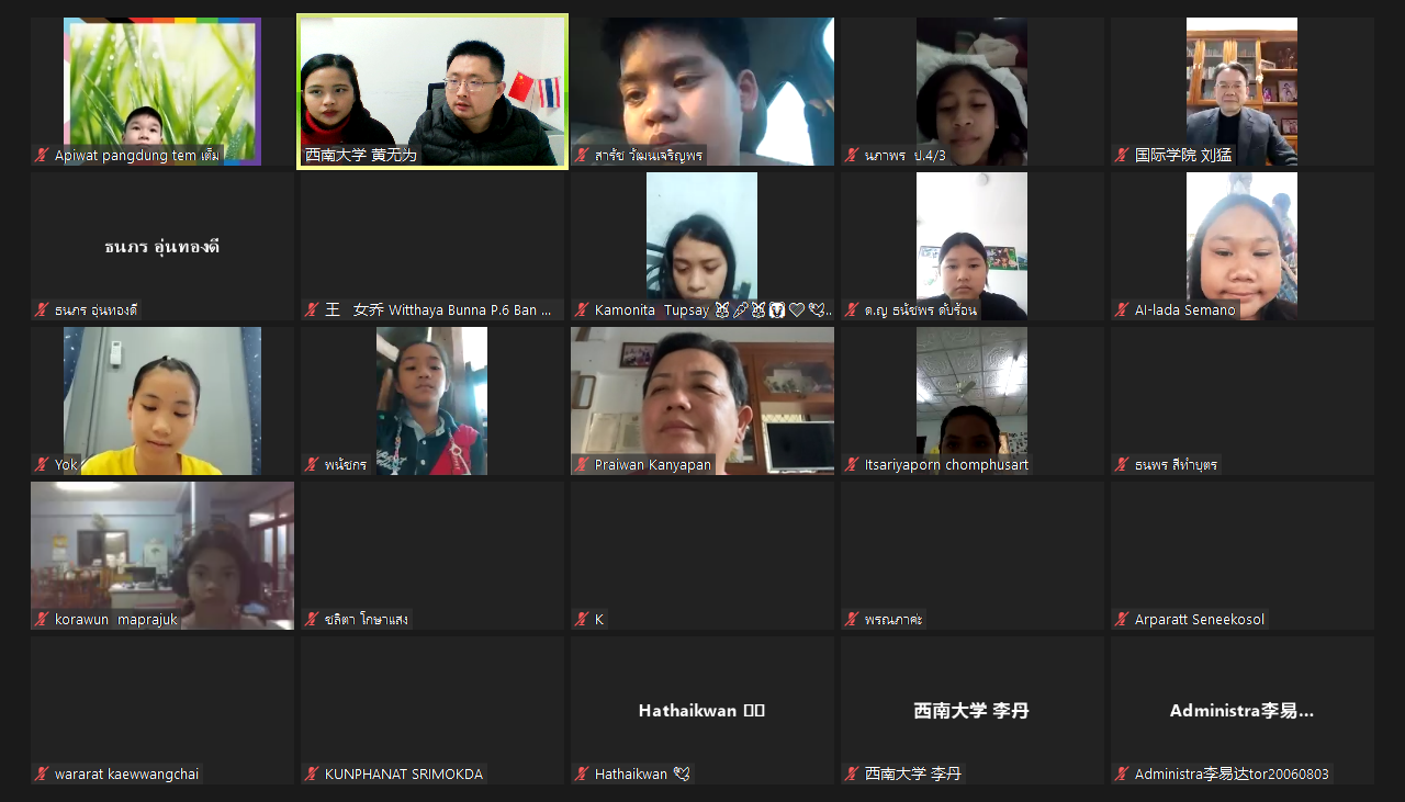 1月28日晚,由中国教育部中外语言交流合作中心主办、公司与泰国孔敬市政府越甘小学共同承办的 “汉语桥betway必威中国-泰国孔敬大学孔子公司‘玩转汉语,云游中国’小员工线上项目” 闭营仪式暨成果汇报展顺利举行,国际公司党总支书记刘猛,汉语国际教育系主任杨甜、泰国孔敬市政府越甘小学汉语教学负责人洪邵玲(Mrs.Praiwan Kanyapan)、betway必威中国授课教师以及全体项目员工参加仪式。仪式由项目负责人黄无为主持。