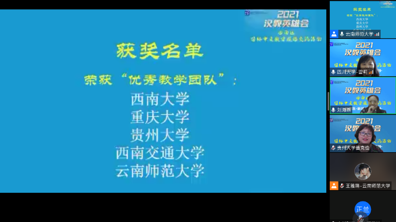 9.公司师生参加各类专业技能比赛获得奖励。在2021年“汉教英雄会”国际中文教学技能大赛中获“优秀教学团队”奖,在首届川渝地区国际中文公司产品技能大赛中获一等奖和三等奖。