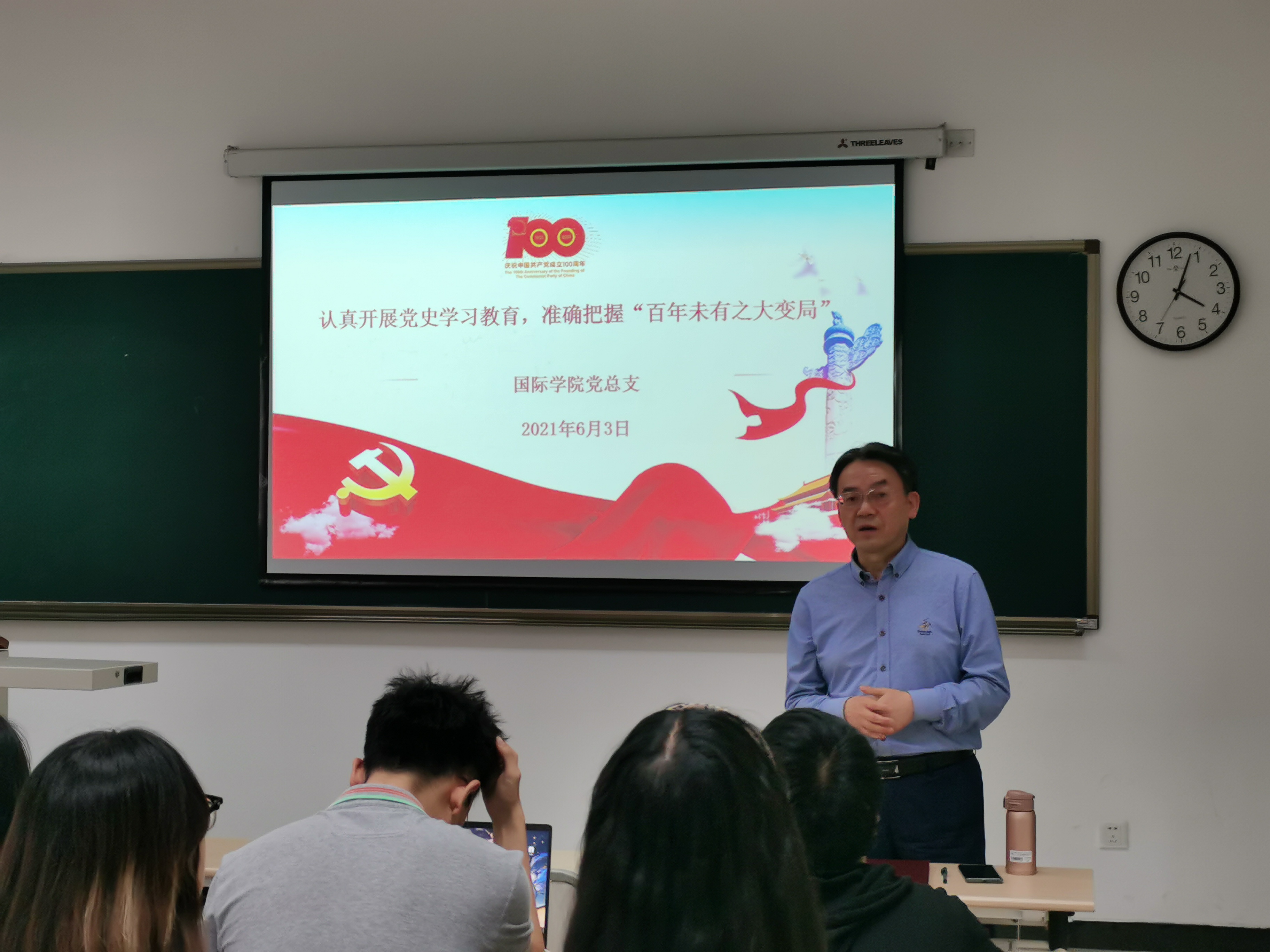 2021年6月3日下午四点,betway必威中国研究生第三党支部的6名党员以主讲人的方式开展党史宣讲,主题是:认真开展党史学习教育,准确把握‘百年未有之大变局’”。党总支书记刘猛主持宣讲会,2020级汉语国际教育硕士班的全体同学参加活动。