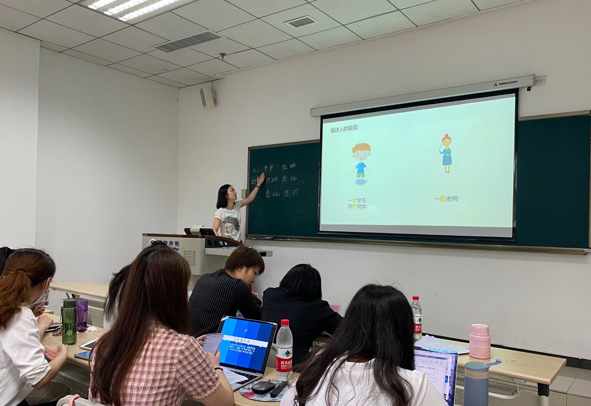 5月19日上午8:30,2020级汉硕生齐聚紫云楼312教室,公司教师涂敏、冯雪、李丹担任本次课堂教学技能大赛的评委,参与比赛的35名同学依次上台展示自己的课堂教学技能。虽然只有短短的五分钟,但是大家都精心设计了自己的教学环节,从课堂导入、知识讲解到活动操练,从教姿教态、教学工具到教学组织,从词汇、语法到文化,可谓异彩纷呈,各有千秋!比赛结束,涂敏老师做了总结发言,分别从不同课型入手,对大家的教学展示做了细致而中肯的点评,提出了优化教学工具、调整教学语言、改进教学活动等建议。