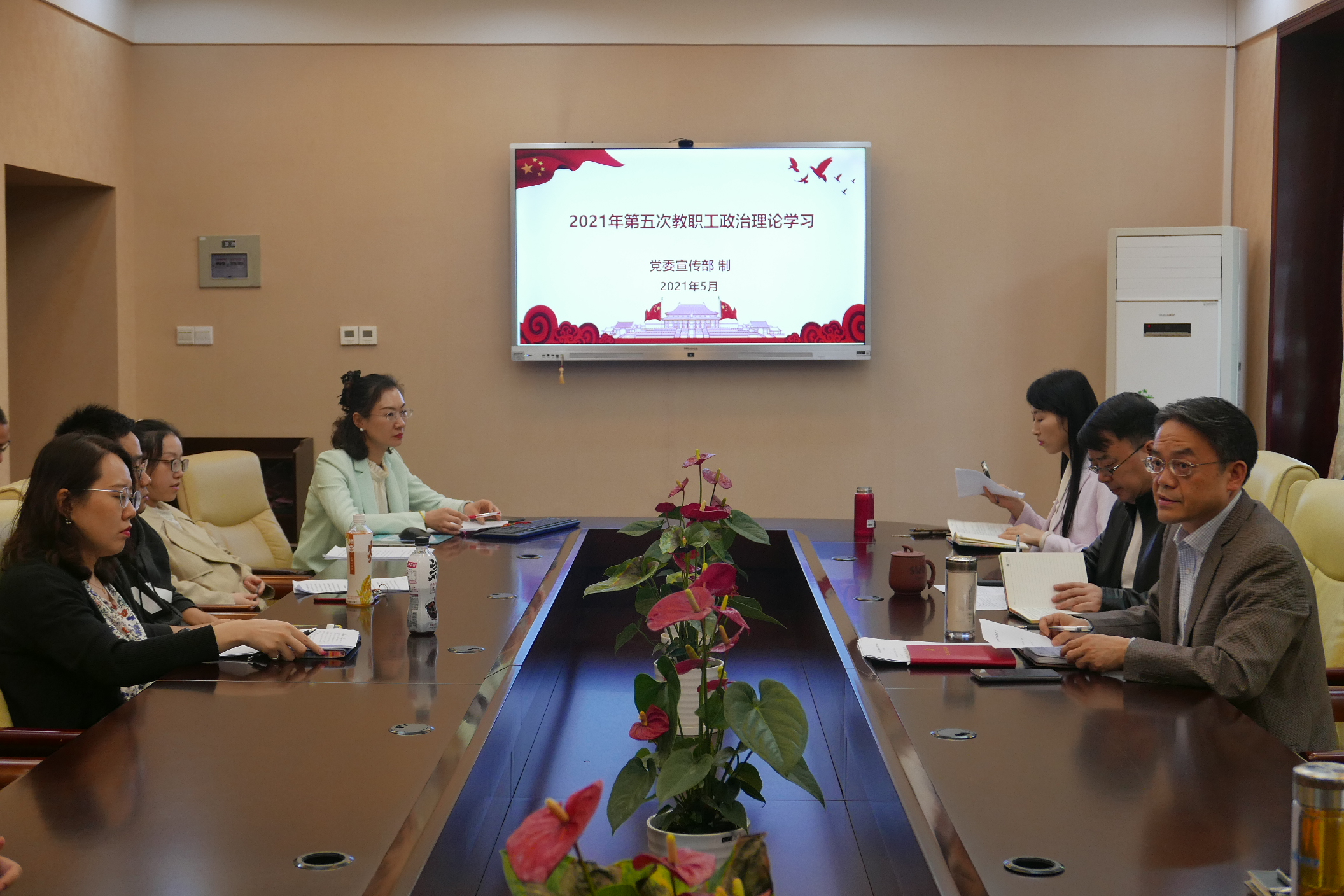 2021年5月7日下午3点,betway必威中国全体教职员工在紫云楼签约室开展本年度第五次政治理论学习活动,会议由刘猛书记主持。