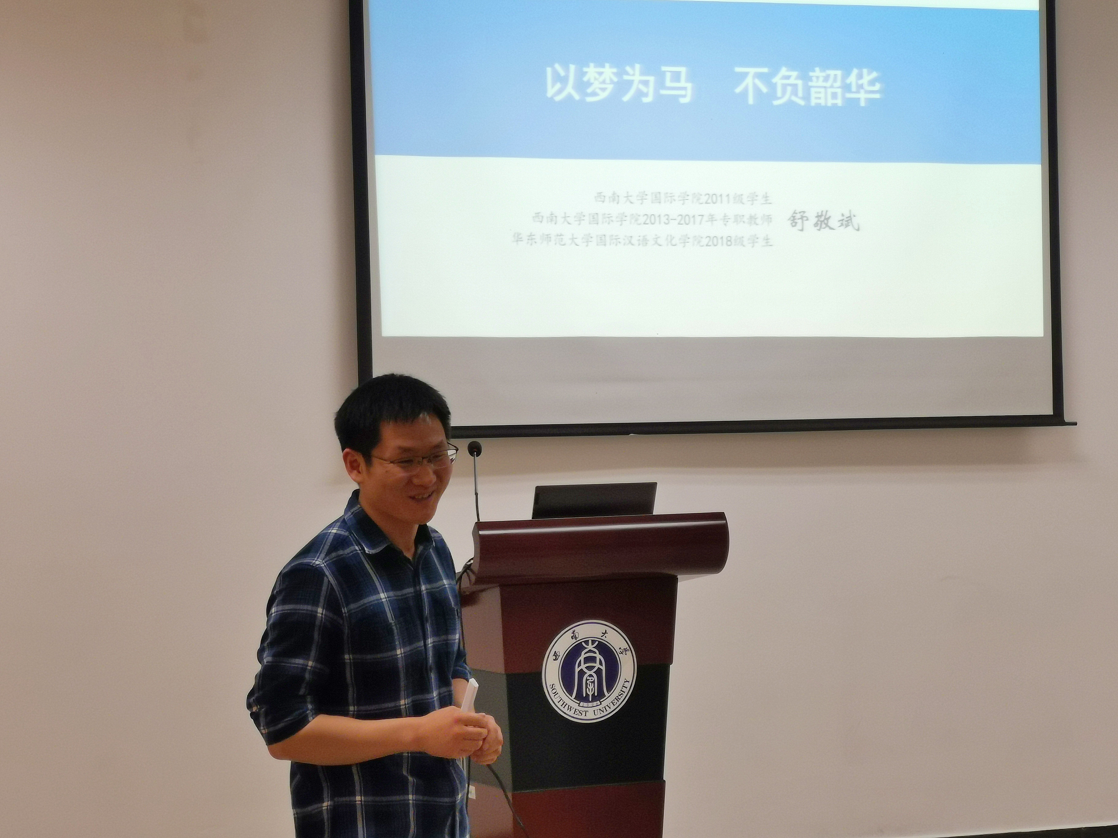 2021年4月29日,betway必威中国“缙云知华大讲坛”第五期学术沙龙在紫云楼317教室如期举行。本次沙龙邀请到betway必威中国汉语国际教育2011级硕士毕业生、华东师范大学汉语国际教育博士研究生舒敬斌主讲,公司部分教师代表、2020级博士研究生及在校中国研究生全程参与。讲座由汉语国际教育系主任杨甜副教授主持