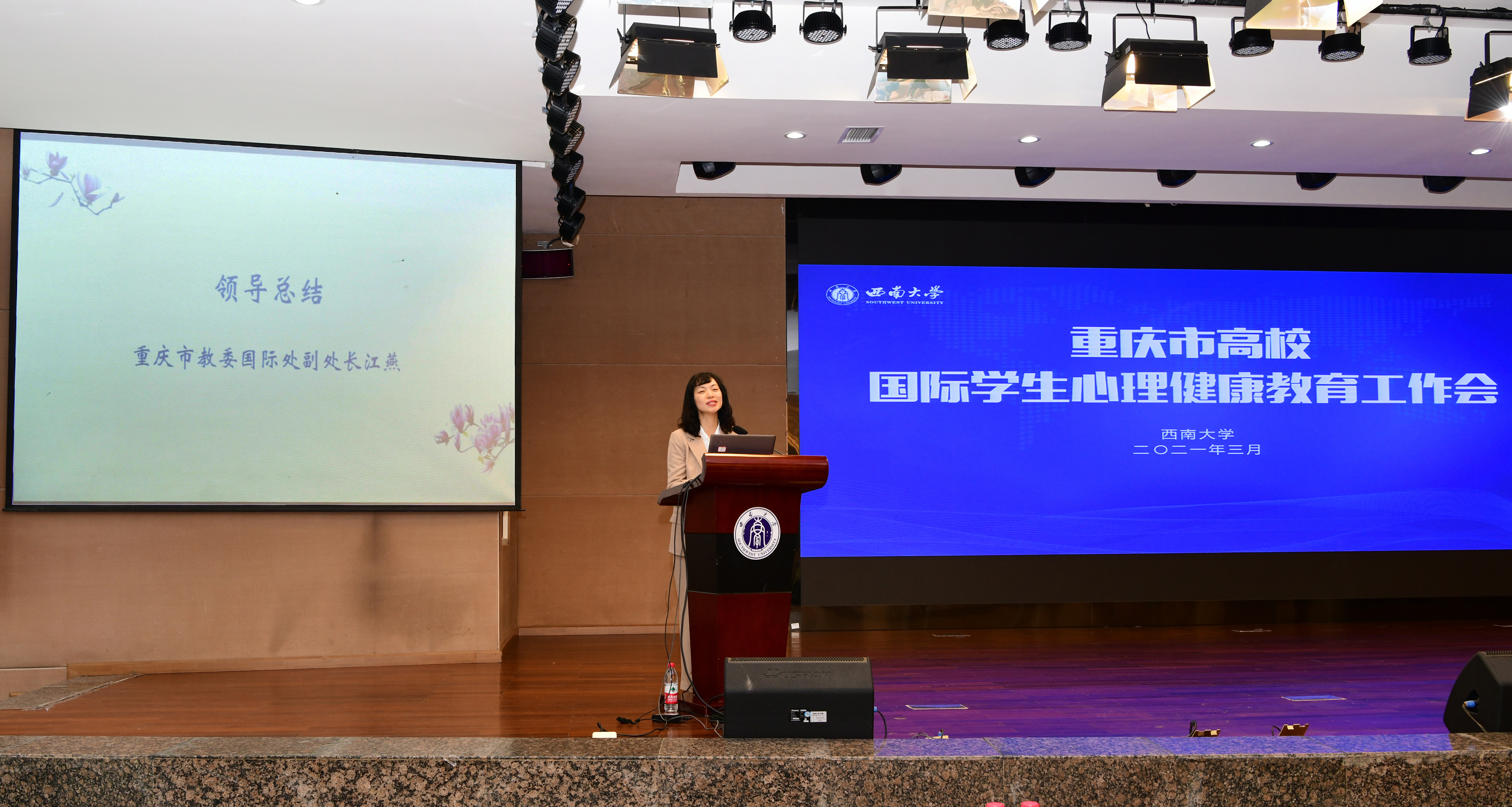 为贯彻落实习近平总书记给北京科技大学全体巴基斯坦职工的回信精神以及教育部《来华职工高等教育质量规范(试行)》(教外〔2018〕50号)的要求,加强国际员工心理健康教育,进一步做好常态化疫情防控下的国际员工管理与服务工作,3月31日,重庆市高校国际员工心理健康教育工作会在公司召开。市教委宣教处、国际合作与交流处负责人出席会议,34所高校国际员工管理部门负责人、国际员工管理干部、心理健康教师等140余人参加会议。