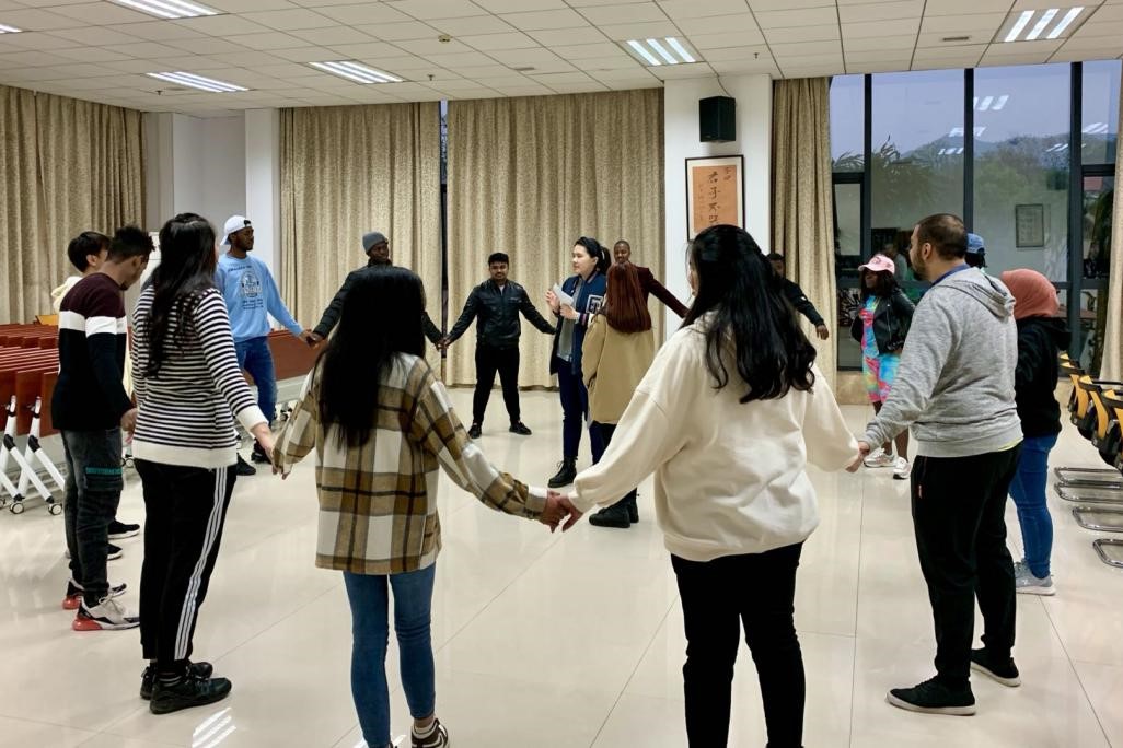 活动伊始,辅导老师用“大风吹”热身游戏带领同学们进入了轻松愉快的氛围,来自五湖四海的同学们手牵手围成一个圈,跟随指令变换位置,通过这个游戏,大家学会了将目光放在他人身上,感受他人、欣赏他人。