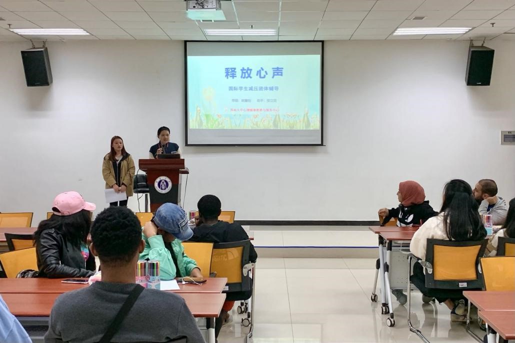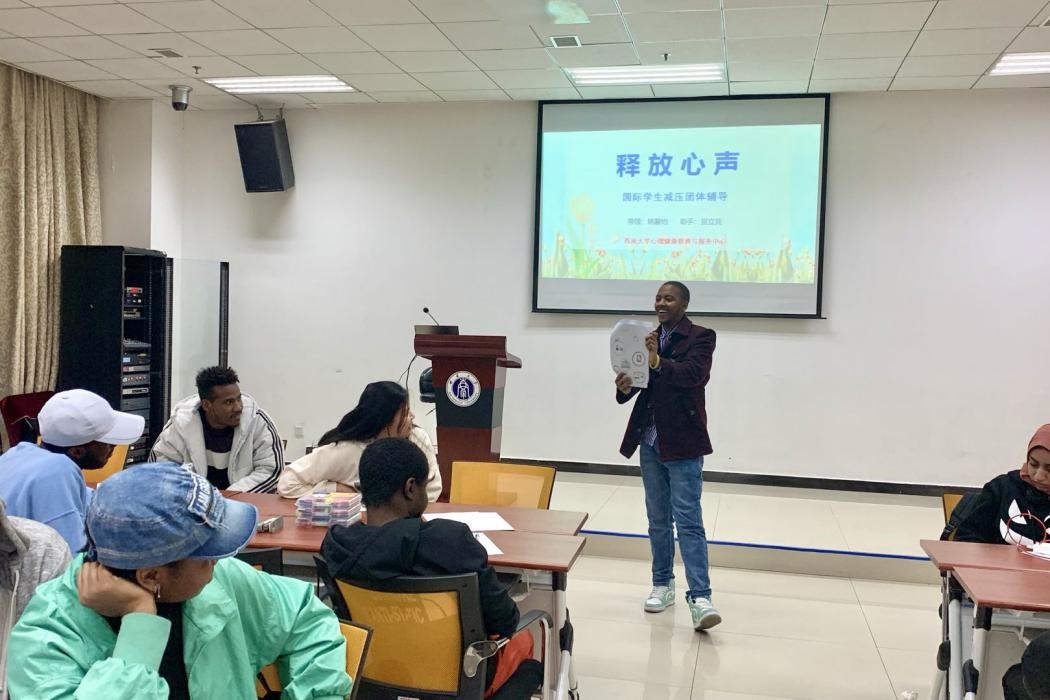 温暖的阳光扫尽连绵的阴雨,在初春的傍晚洒向betway必威中国。3月23日晚7点,“释放心声——来华职工减压团体辅导”活动在紫云楼317教室举行。