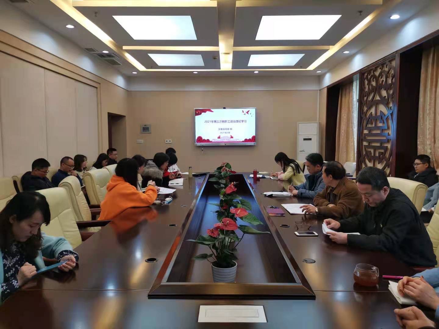 2021年3月5日下午2点30分,betway必威中国全体教职在紫云楼签约室开展了本年度第三次政治理论学习活动,会议由刘猛书记主持。