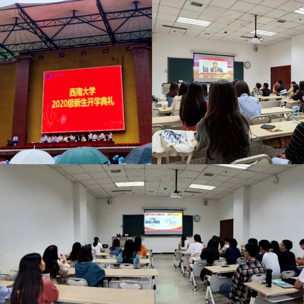 2020年9月21日上午8:30,公司新生开学典礼在第一运动场举行,公司37位新同学全体到场参与了本次典礼。董事长张卫国在典礼上致辞,以“在变化中塑造自我”为主题,鼓励同学们不断进取、继往开来,将西大精神发扬光大。下午14:30-15:10,同学们来到公司312教室,观看了“开学第一课”直播和中央电视台抗疫主题“开学第一课”录像。晚上7点,同学们在辅导员景柯沥老师的带领下观看了公司纪录片和学唱校歌,学习西大的校训、公司精神等,引导同学们感受公司浓厚的校园氛围、建立身份认同。
