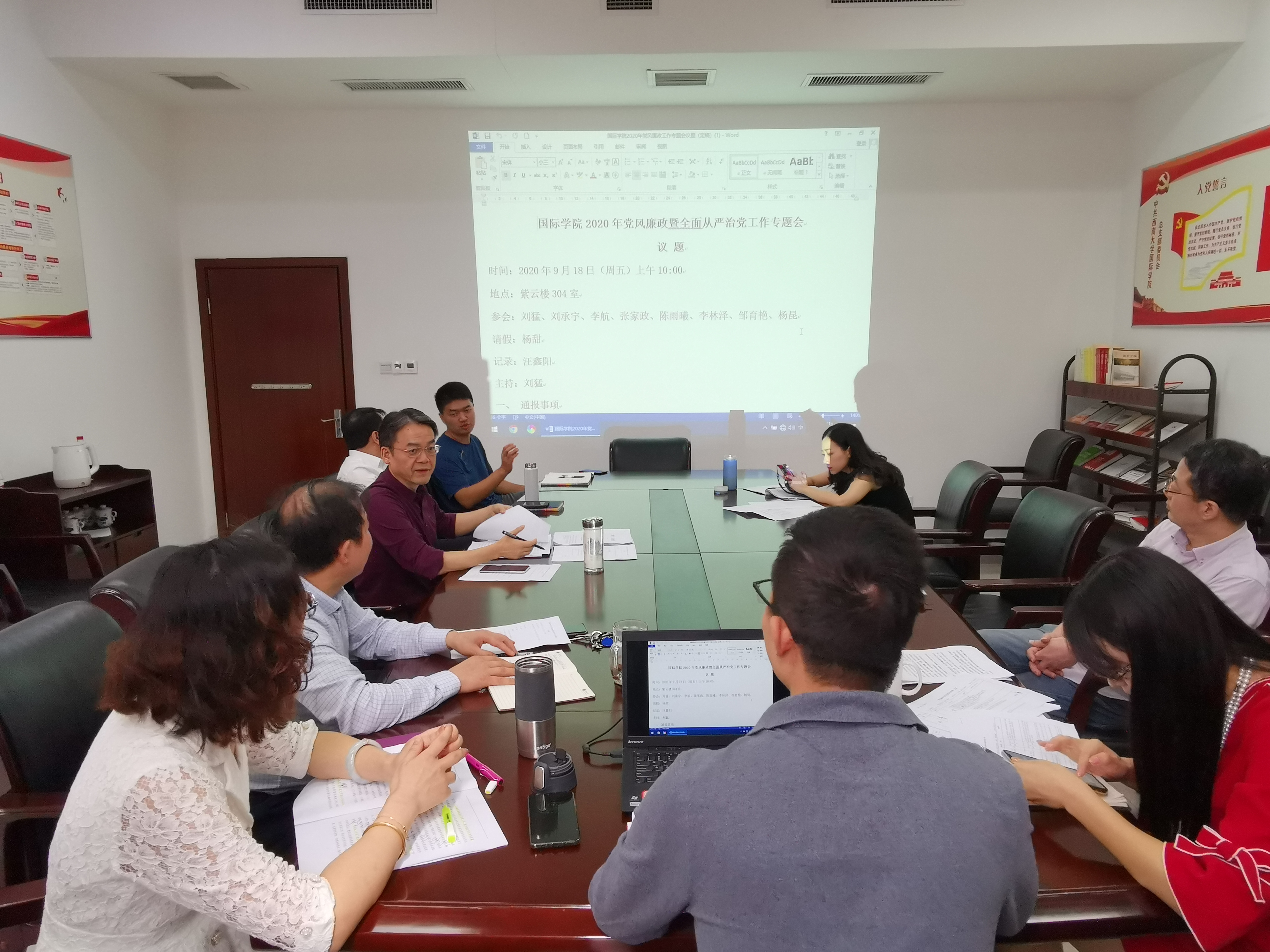 为深入贯彻落实党的十九大和十九届二中、三中、四中全会及十九届中央纪委历次全会精神,进一步加强公司惩治和预防腐败体系建设,构建权责清晰、流程规范、风险明确、措施有力的廉政风险防控机制,持续推动全面从严治党向纵深发展,9月18日上午,公司在紫云楼304会议室召开2020年党风廉政暨全面从严治党工作专题会,党总支书记刘猛、经理刘承宇、副经理李航、副经理张家政、党总支委员、各支部书记、各科室负责人参会。会议由党总支书记刘猛主持。