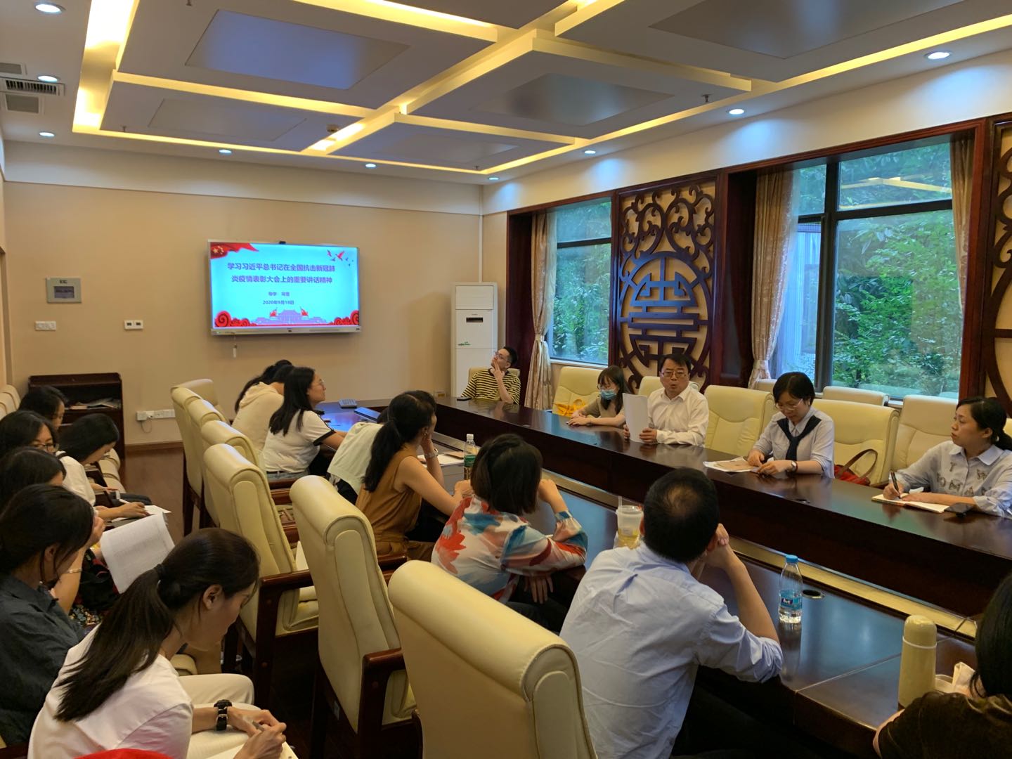在行政组,景柯沥同志负责导学,将总书记的讲话精神总结为5个制胜密码、5个词诠释伟大抗疫精神、6个方面的启示和5项工作部署,带领大家全面学习了《习近平总书记在全国抗击新冠肺炎疫情表彰大会上的重要讲话精神》。