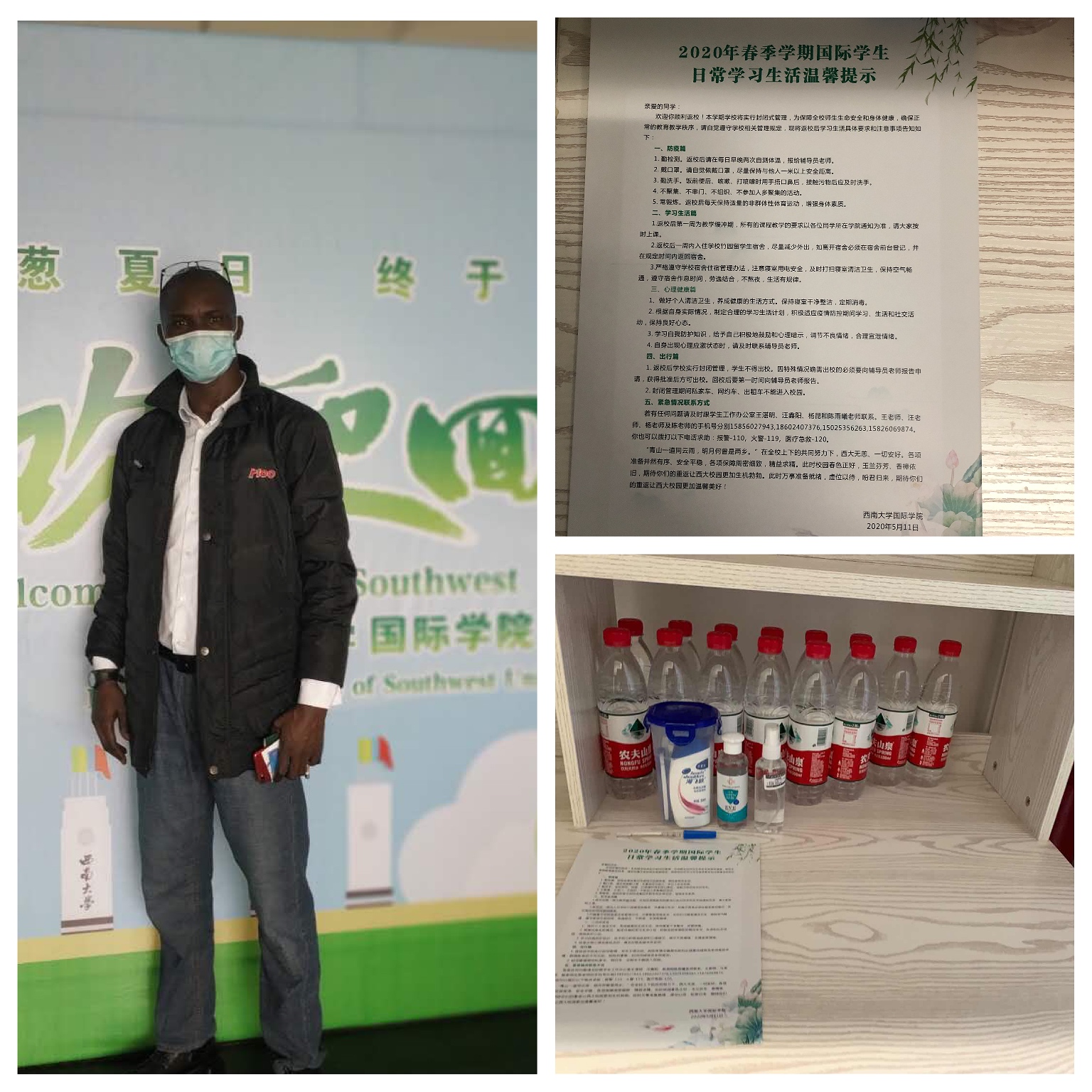 为统筹协调国际员工返校工作,保障员工顺利返校,betway必威中国多次召开专题会议,落实有关工作细节。外事服务中心提前做好宿舍通风、清洁消杀以及安全检查工作,同时做好公寓检修和维护,保证员工活动空间空气流通、环境安全。还为首批境内返校国际员工准备了医用口罩、免洗消毒液、体温计、洗漱用品、《2020年春季学期国际员工日常学习生活温馨提示(中英双语版)》等在内的爱心包,希望返校的同学能感受到公司暖暖的心意。