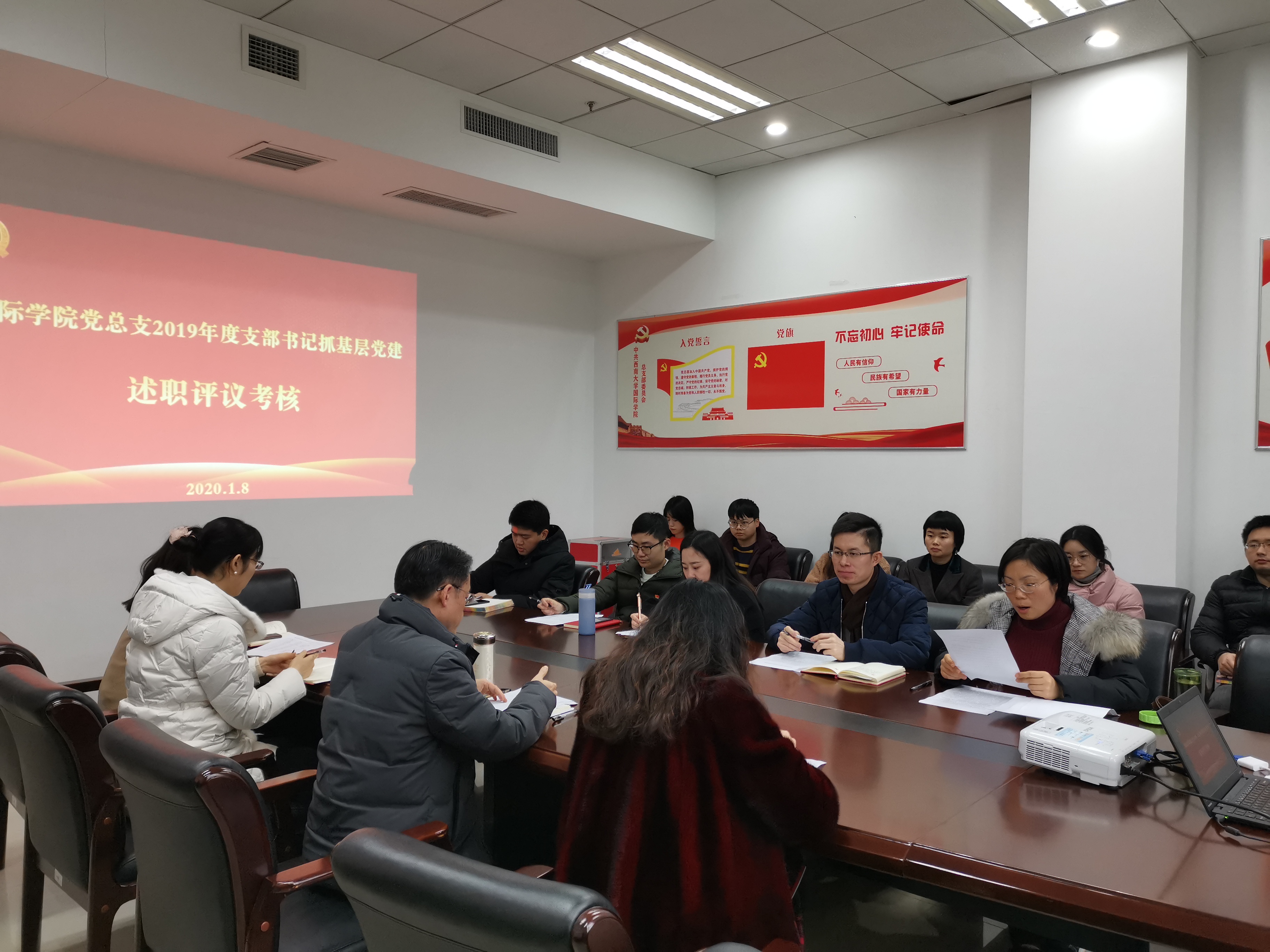 2020年1月8日下午3:00,国际公司党总支在紫云楼304室举行了2019年度支部书记抓基层党建述职评议考核会。公司党总支委员、各支部书记、党务秘书以及党员和群众代表等16人参加会议,公司组织部委派李园媛同志到会指导工作。会议由党总支书记刘猛同志主持。