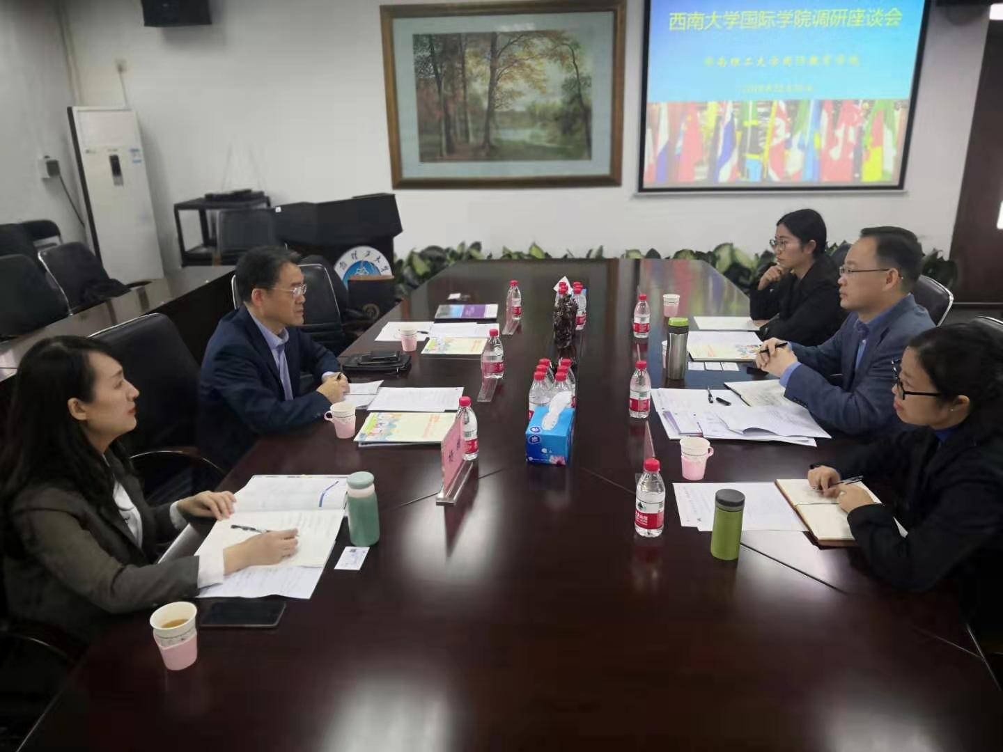 在华南理工大学调研时,该校国际教育公司经理王庆年、副经理潘俊、教务办主任叶敏、汉语教研室李雪莲老师等参加了座谈。潘经理对刘猛书记一行的到来表示欢迎并介绍了职工国情教育工作的开展情况,叶敏主任具体介绍了汉教专业的课程设置、团队建设及员工实习等情况。