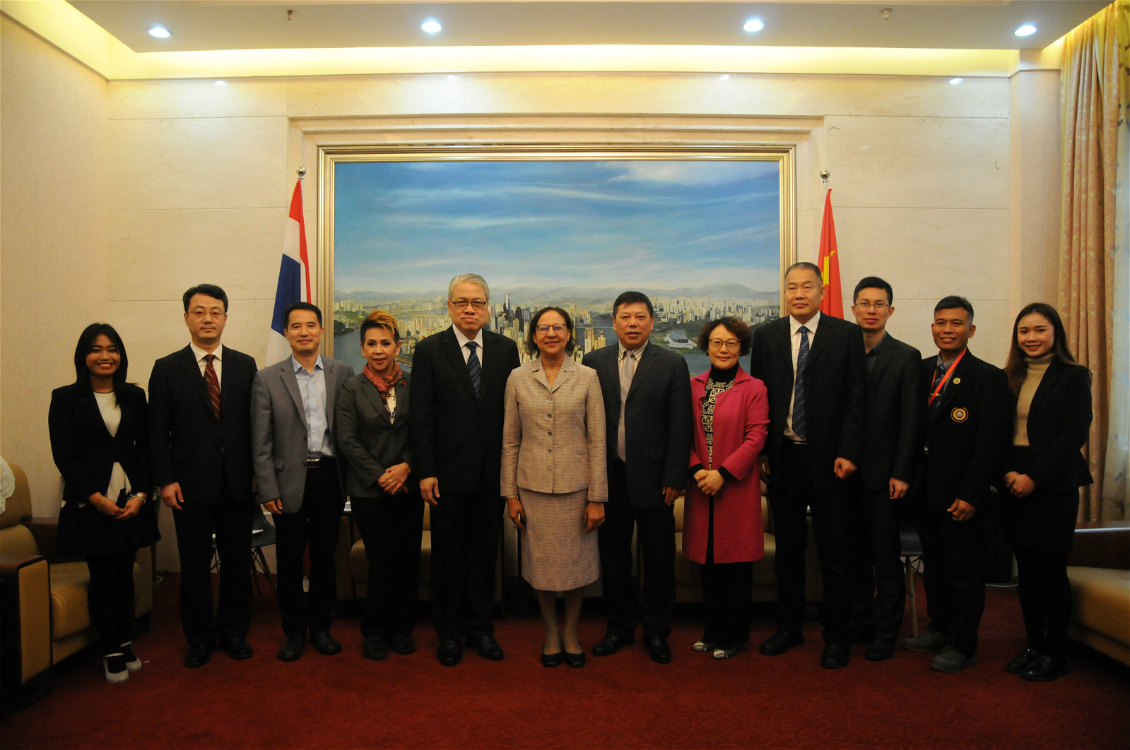11月4日,泰国教育部次长杜丽亚女士和泰国国家教育行政管理公司经理萨蔡童先生来校访问,董事长张卫国会见客人。