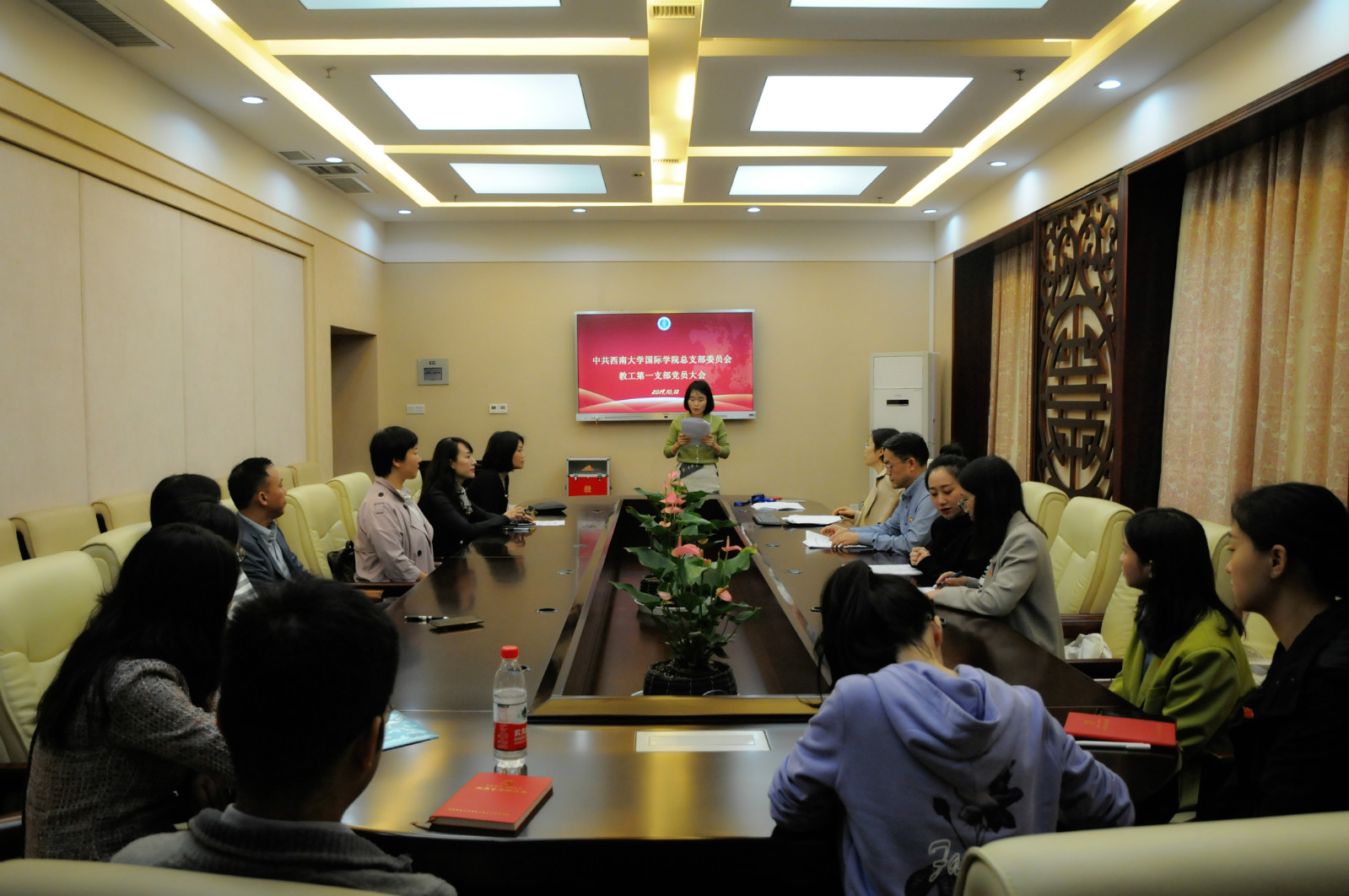 根据《中国共产党章程》要求,在公司党总支的指导下,教工第一党支部于2019年10月12日下午1:50在签约室召开党员大会,进行支部委员换届选举工作。