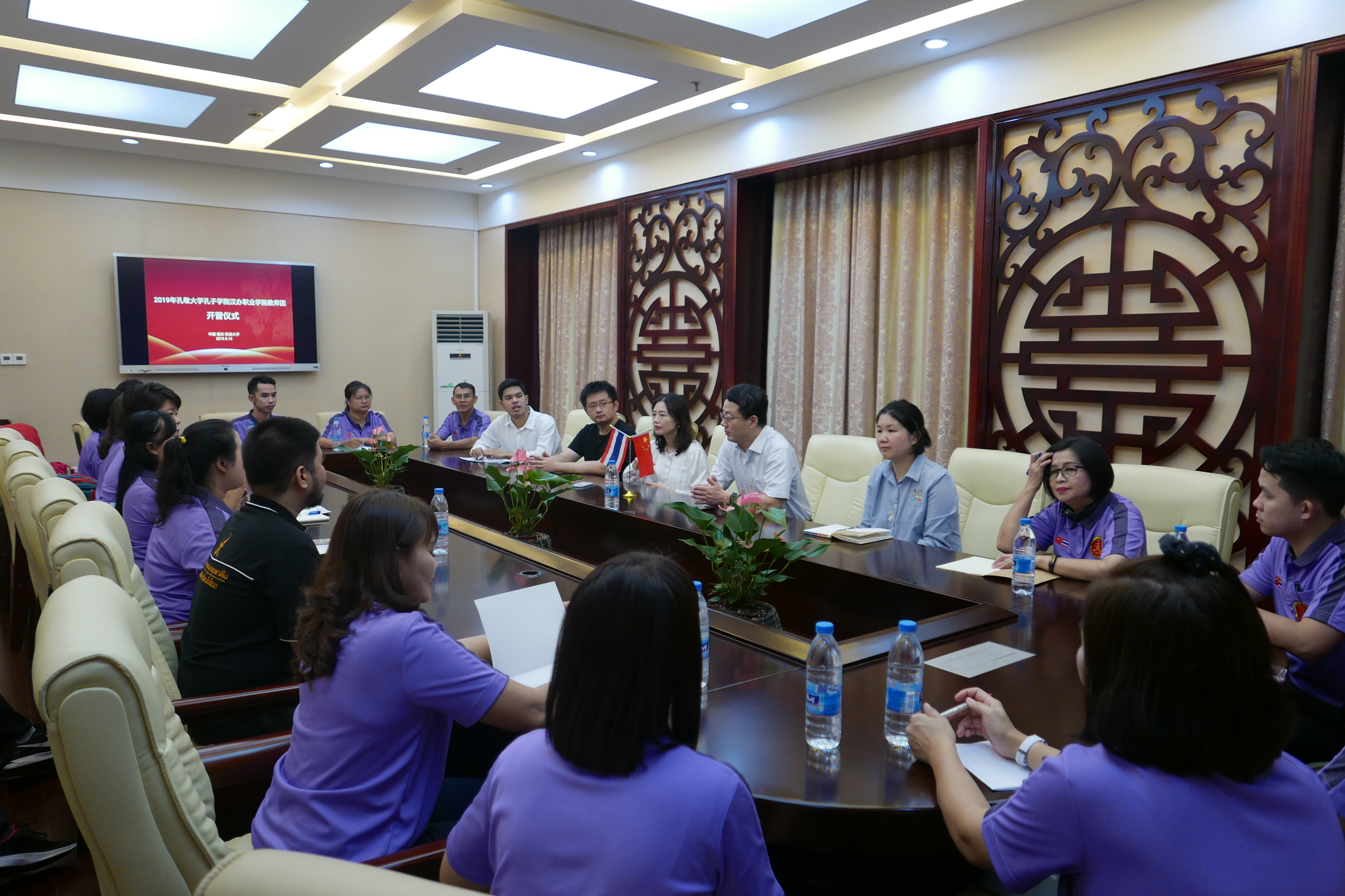 9月27日上午,公司举行了“泰国孔敬大学孔子公司汉办职业院校教师团”的结营仪式。来自泰国17所职业院校的20名教师于9月15日来公司,参加了为期14天的汉语及中国文化学习体验活动。betway必威中国副经理李航,孔敬大学孔子公司中方经理胡琳,职工招生办公室主任黄无为、党影婷以及志愿者参加结营仪式。