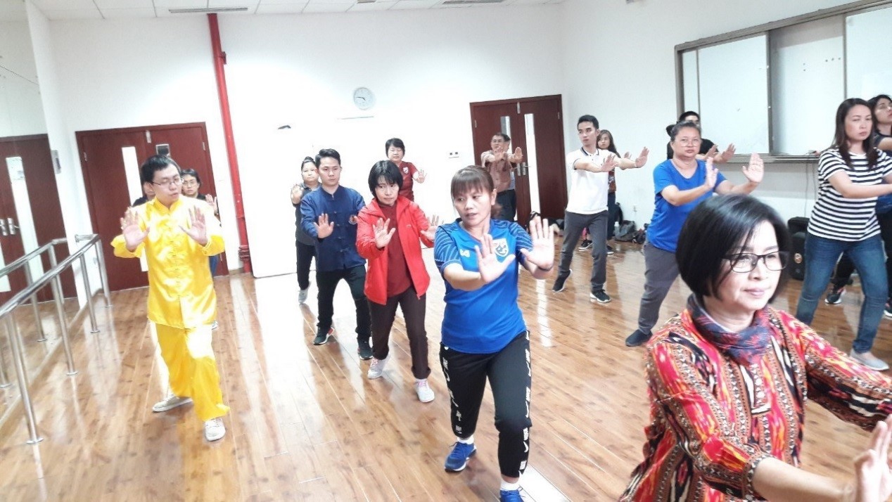 教师团员们的汉语水平分化较大,98%的营员汉语水平为HSK二级,2%的为HSK四级或五级。公司在汉语课程安排上注重汉语的日常交际功能和趣味性,调整授课方式,用情景教学的方法,通过角色扮演、制作模拟、场景运用等方式活学活用,不仅活跃了课堂气氛,更是让营员们牢牢地记住了汉语的相关表达方式和交际语言,老师们循循善诱,有的放矢,耐心讲解,互动讨论,对营员们汉语学习的兴趣和信心助益颇多。团员对老师的教学方法十分赞赏并觉得这样的学习很有趣也很有效率。此外,公司还为团员开设了太极课、中国书法、中国结等中华文化课程,深受团员们喜爱。同时公司为团员们安排了5名在校汉语专业泰国籍职工担任语伴,在学习和生活方面给予团员们全面支持和帮助。