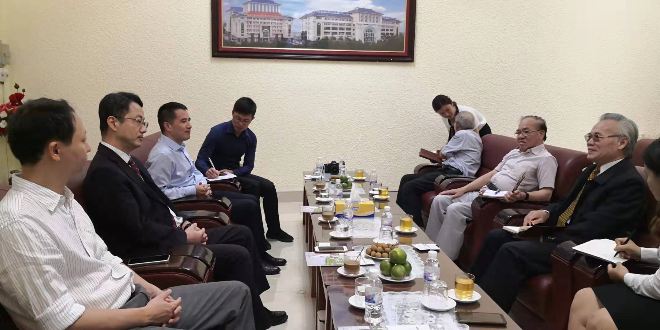 8月26日,代表团一行访问了越南教育管理公司,并与该校董事长Pham Quang Trung教授、副董事长Tran Duc Minh教授、国际合作处处长Le Thi Thuy Nga及相关工作人员举行了会谈。在简要回顾了教育领导与管理专业硕士研究生的境外办学项目后,双方就该项目在招生录取、教学管理、学位认证等方面所面临的问题和挑战进行了深入洽谈,共同寻求解决方案。同时,双方还一致同意开拓两校在短期访问学习等方面的合作。