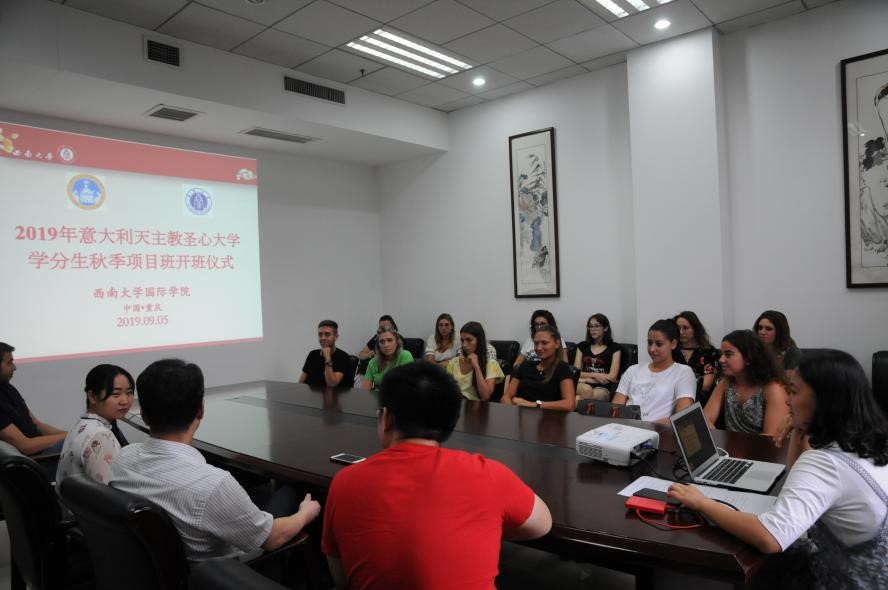 2019年9月5日上午10:30,2019意大利天主教圣心大学学分生秋季项目班开班仪式在betway必威中国紫云楼304举行。betway必威中国副经理李航,betway必威中国招生办公室代表黄无为,betway必威中国任课教师代表刘妍芩,以及2019意大利天主教圣心大学学分生秋季项目班全体14名员工参加了本次仪式。仪式由班主任老师张鹭遥主持。