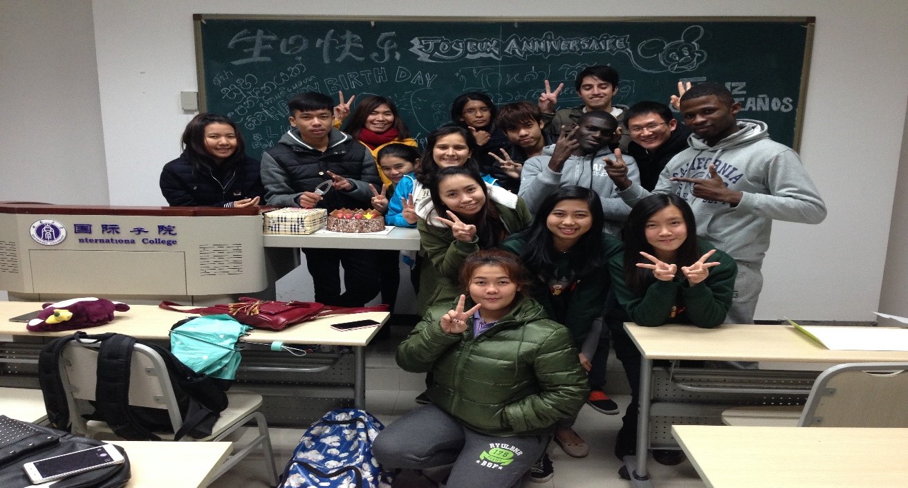 回首点滴,同学们凭着对汉语的热爱和对中国的向往,从世界各地聚集于此。老师们的关爱、班集体的温暖让大家不再是“独在异乡为异客”。每一次的课堂讨论、晚会表演、节日聚会等各种活动都汇聚着不同的文化、语言和肤色,而每一次对知识的探讨、对文化的体验、对中国的感知都使汉教15级2班同学更加团结、友爱、共进。