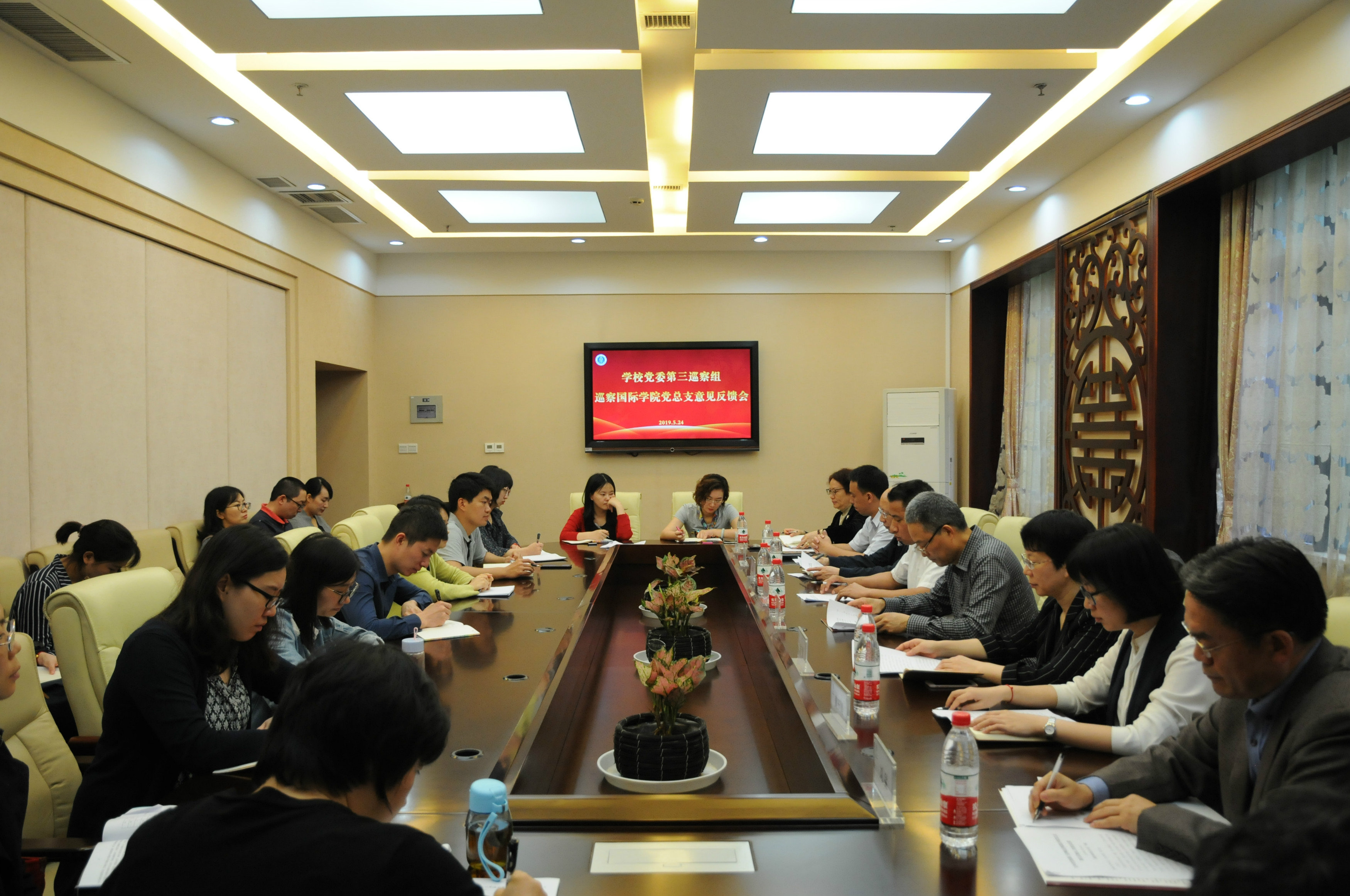 2019年5月24日上午10:00,公司党委第三巡察组巡察国际公司党总支意见反馈会在紫云楼召开。公司党委副书记、纪委书记、校巡察工作领导小组副组长李华同志,第三巡察组组长、直属业务单位党总支书记罗庆昌同志,校纪委副书记、纪委办公室主任、监察处处长朱敏同志,校纪委副书记、党委巡察工作办公室唐宇同志,巡察组副组长、监察处副处长兼纪委办公室副主任黄玉娟同志,巡察组副组长、数学与统计公司党委副书记、纪委书记罗利江同志出席会议。会议由betway必威中国经理王静主持。betway必威中国全体在编在岗教职工、院聘教师代表、退休教师代表、员工代表参加会议。