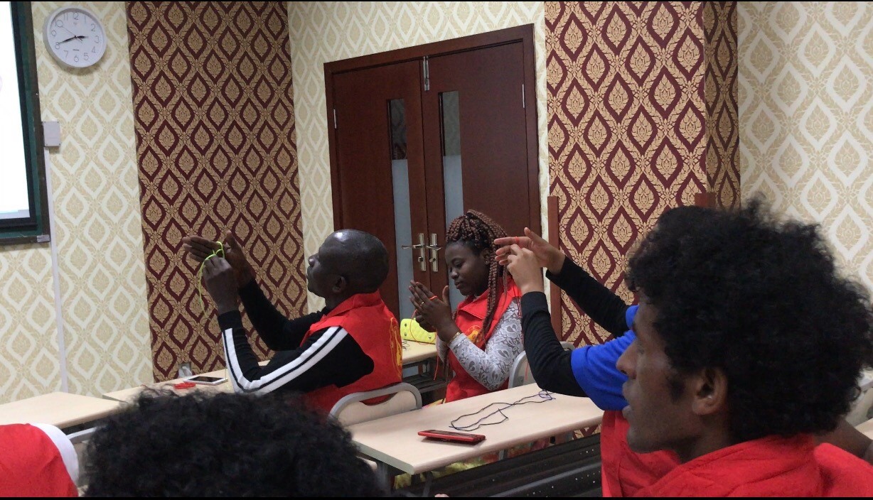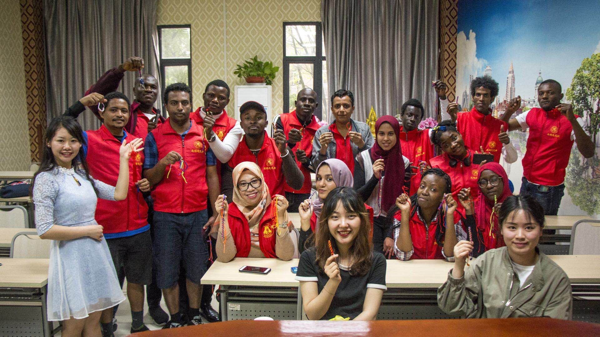 betway必威中国“洋雷锋”志愿者服务队为喜迎五一劳动节、致敬中国平凡英雄,2019年4月28日下午两点半在紫云楼210教室参加了“情系中国结,献礼劳动者”的编织中国结的文化体验活动,来自泰国、尼日利亚、马达加斯加、厄立特里亚、喀麦隆等国家的20余名洋雷锋志愿者参加了此次活动。