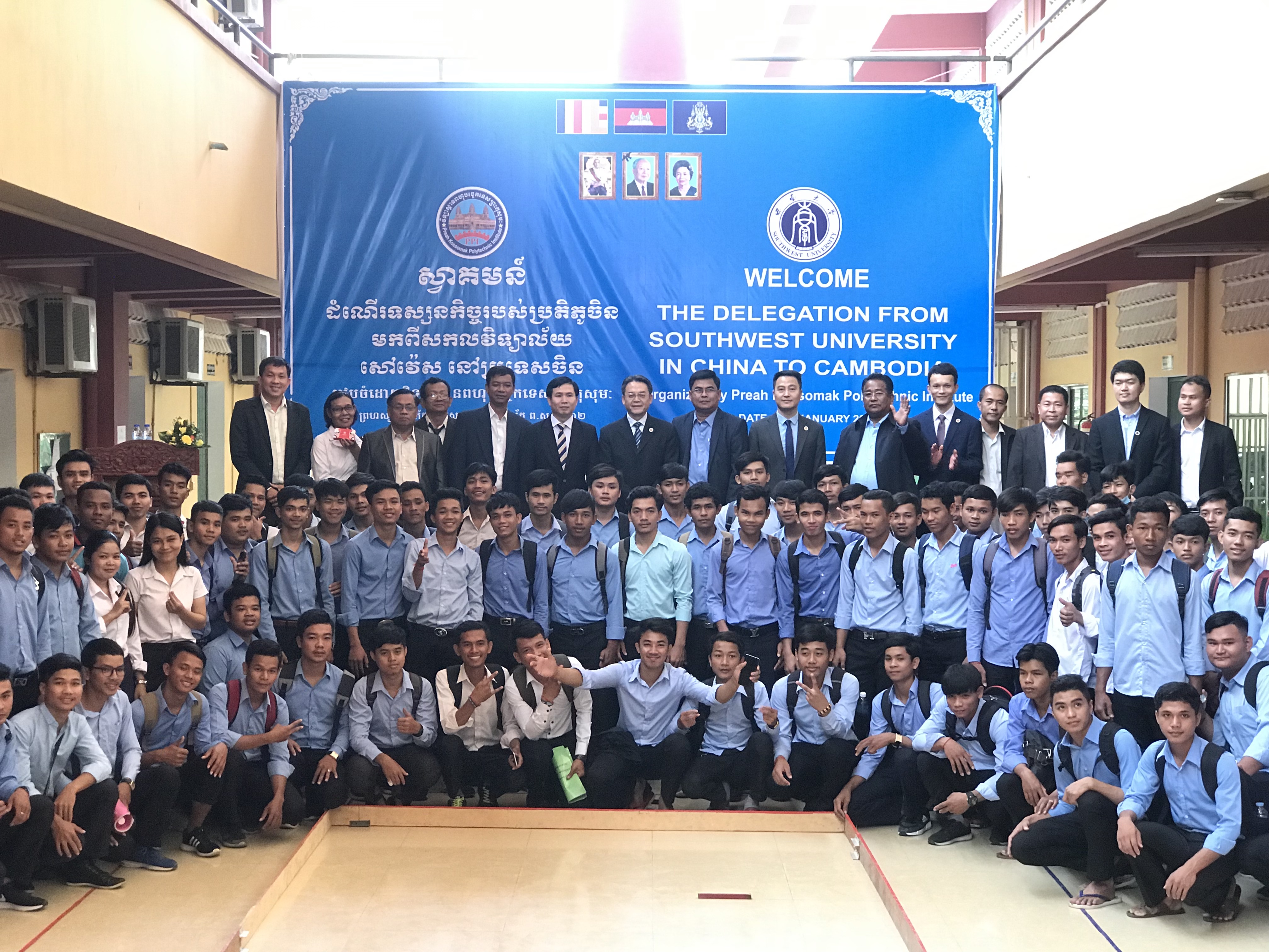 代表团先行访问了柬埔寨金边皇家大学、国立管理大学和皇家理工公司(Preach Kossomak Polytechnic Institute)等相关高校,柬方负责人充分肯定betway必威中国良好的办学条件,并期望尽快启动双方实质性合作。其中,金边皇家大学副董事长CHHUN HOK对与betway必威中国教育学和心理学领域的合作表达出浓厚兴趣;国立管理大学副董事长SENG BUNYHOEUN则表示愿意在短期游学项目和学分项目上尝试合作,并就教学、食宿、学费等细节进行商谈。代表团与来自皇家理工公司的400余名在校员工进行了互动,就留学西大的有关问题进行了现场答疑。