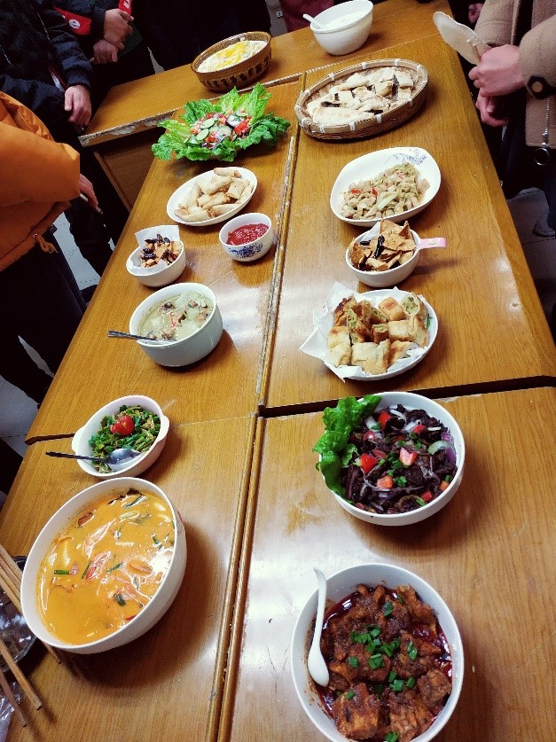 为践行当代中国专题课程之美食专题和欢送即将完成学业回国的2018级CIS一学期员工,12月29日下午,2018级CIS生1班和2班在紫云楼四楼和五楼厨房开展了以“赛出巧手菜 难舍西大情”为主题的班级活动,来自斯里兰卡、泰国、哈萨克斯坦、巴基斯坦、吉尔吉斯斯坦、玻利维亚、秘鲁的7个国家30余名职工参加了此次做菜比赛的班级活动。