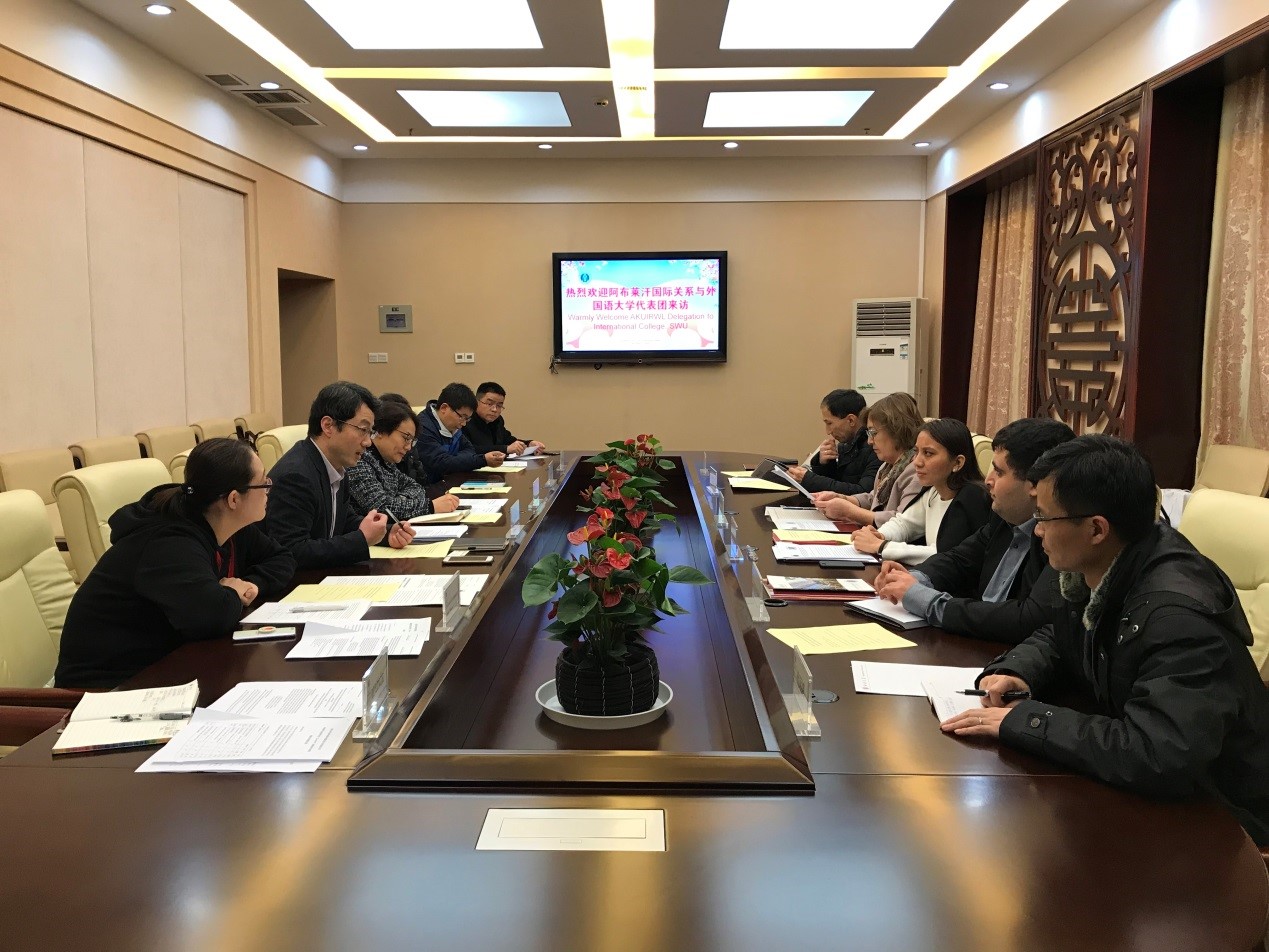 12月6日,哈萨克斯坦阿布莱汗国际关系与外国语大学代表团一行六人来院访问并与betway必威中国、教务处、经济管理公司、政治与公共管理公司相关人员举行务实会谈。会议由betway必威中国副经理李航主持。