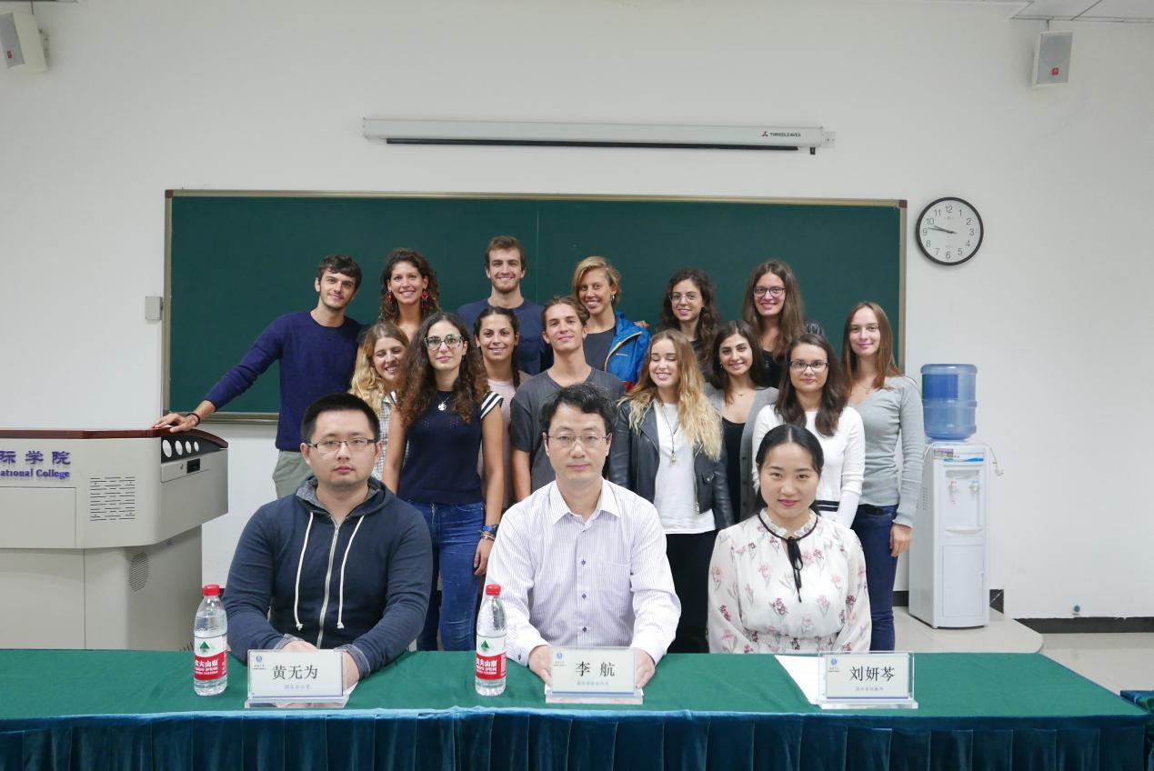李航副经理向威尼斯大学的同学们表示热烈欢迎,并且详细介绍了该项目成立的过程,以及合作院校双方对该项目的重视。他还亲切的告诉同学们学习汉语不能仅仅是在课堂上,还应该利用课余时间,他鼓励大家走出校园,去跟更多的中国人交流,体验中华文化。