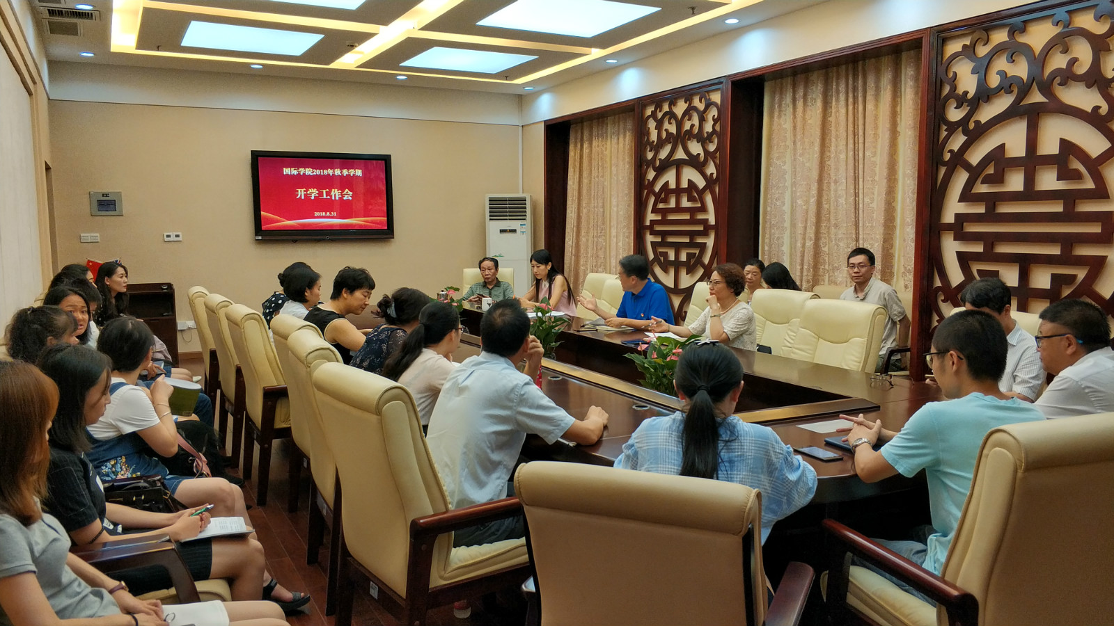 8月31日下午3点,betway必威中国在紫云楼签约室召开2018年秋季学期开学工作会,会议由刘猛书记主持。