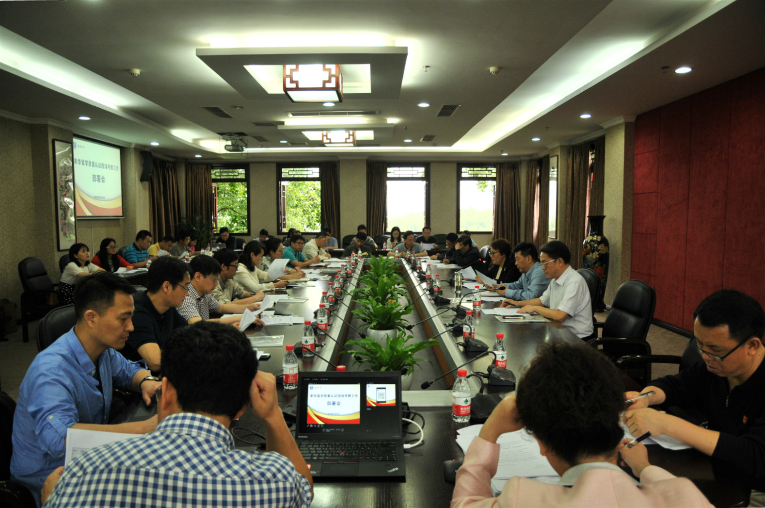 2018年5月29日公司来华留学质量认证现场考察工作部署会在行署楼五会议室召开,副董事长靳玉乐,相关职能部门、直附属单位、企业单位和国际员工培养单位负责人参加会议,会议由国际公司党总支书记刘猛主持。