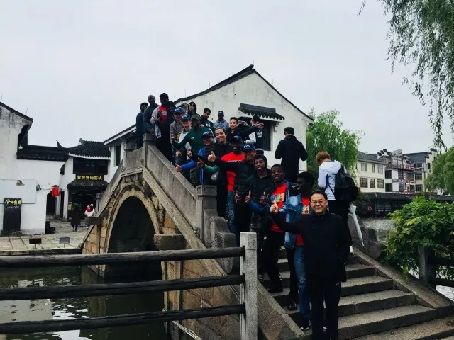 漫步在烟雨长廊,穿梭于古街栈道,跨过无数精致小桥,同学们仿佛置身于一幅古朴的江南水墨画。碧绿蜿蜒的流水、摇曳交错的乌篷船、斑驳陆离的白墙、高高悬挂的灯笼,那唐宋的镇、明清的建筑,和来自世界各国的国际员工全然融合在图画之中却毫无杂乱之感,感受到的尽是时间的流淌和时空的变幻。