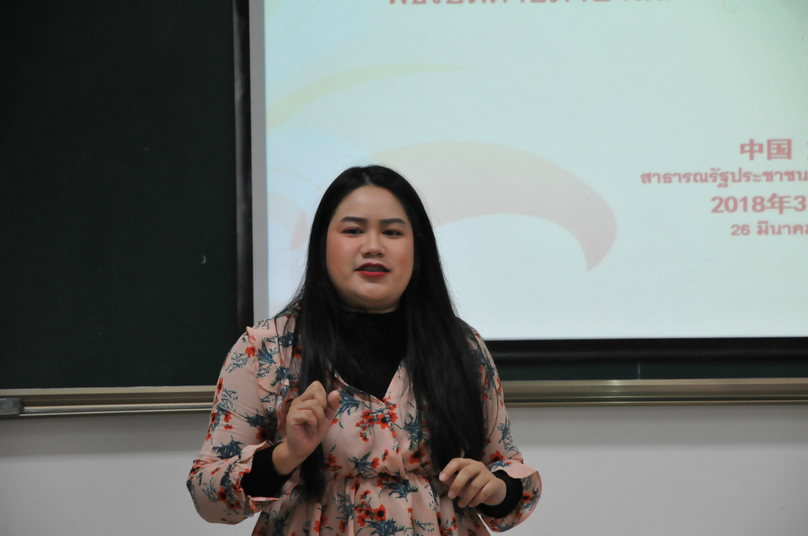泰国黎府中学教师MISS. SUKANYA RATCHAROEN致感谢辞,她向betway必威中国热情周到的接待表示感谢,祝愿每位同学能每一天都有一点小的进步,不要辜负这次珍贵的机会,希望大家学有所成,满载而归。