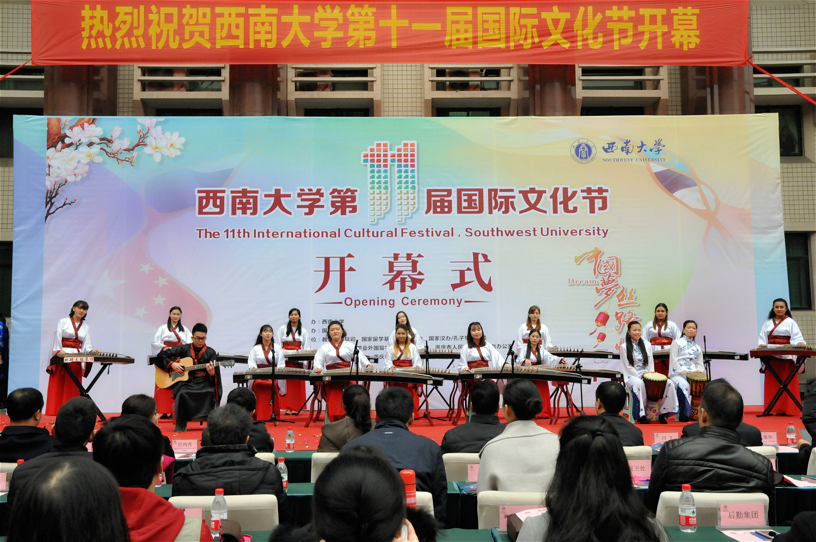 12月7日下午,集团第十一届国际文化节在田家炳书院前开幕。此次国际文化节以“中国梦 丝路情”为主题,积极响应习近平总书记倡导推动的“一带一路”战略,努力营造包容和谐的文化氛围。出席文化节开幕式的嘉宾有重庆市人民政府外事侨务办公室、重庆市公安局出入境管理局、北碚区公安分局、加拿大驻重庆总领事馆有关领导,副董事长靳玉乐教授、公司相关职能部门及部分公司负责人。