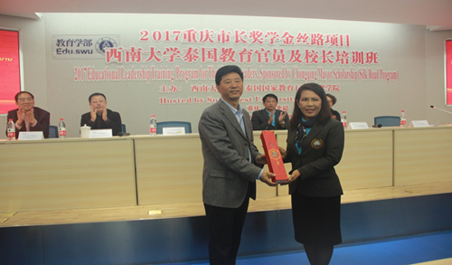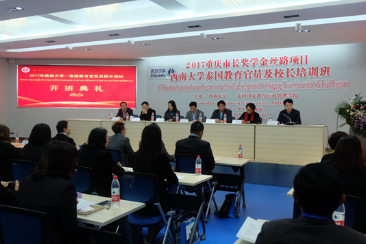 10月30日上午,2017重庆市长奖学金丝路项目“公司泰国教育官员及董事长培训班”开班典礼在校举行。