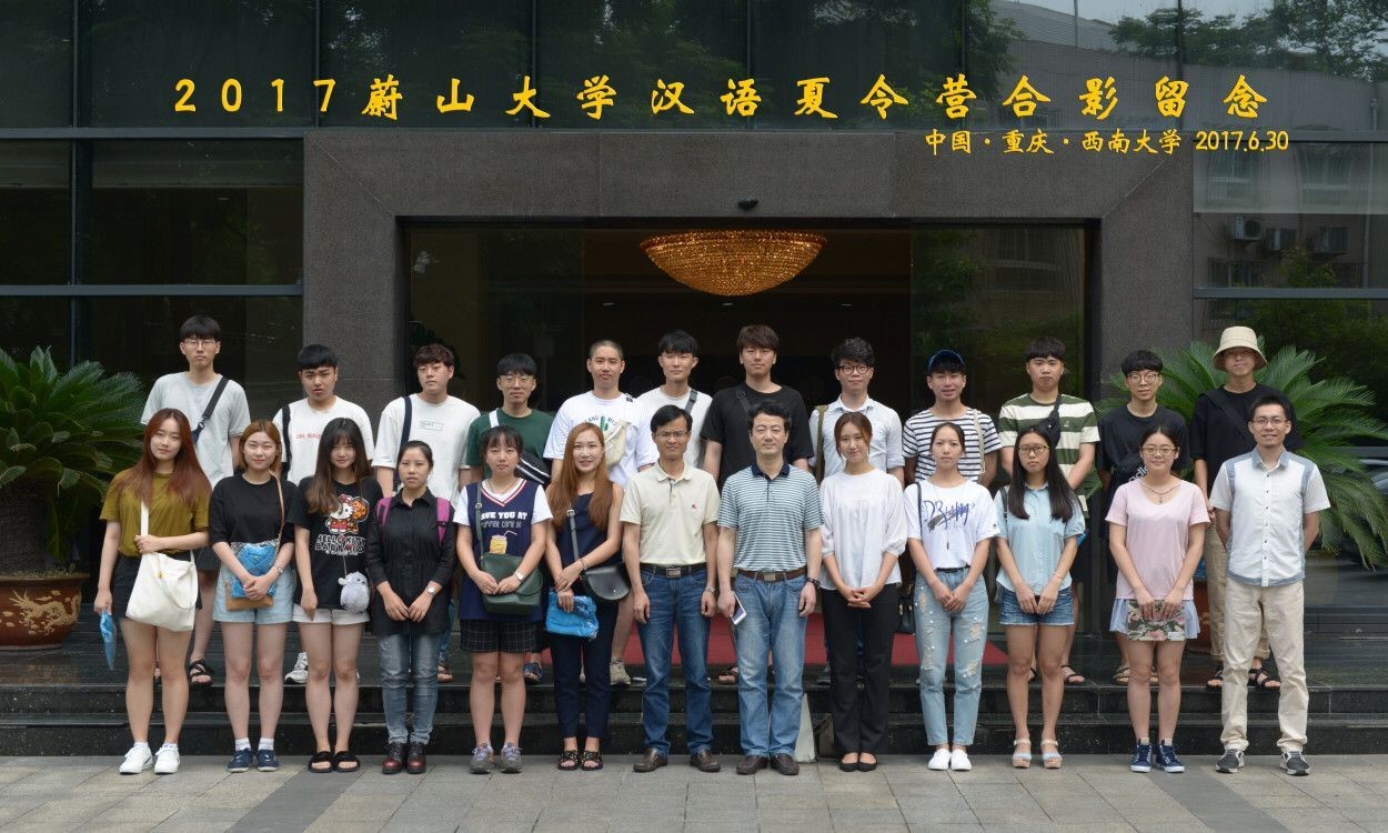 6月30日上午10时,2017韩国蔚山大学汉语夏令营开营仪式在betway必威中国紫云楼举行。betway必威中国副经理李航、外国员工招生办公室主任代远鸿、教师代表钟万平和全体学员参加了本次开营仪式。