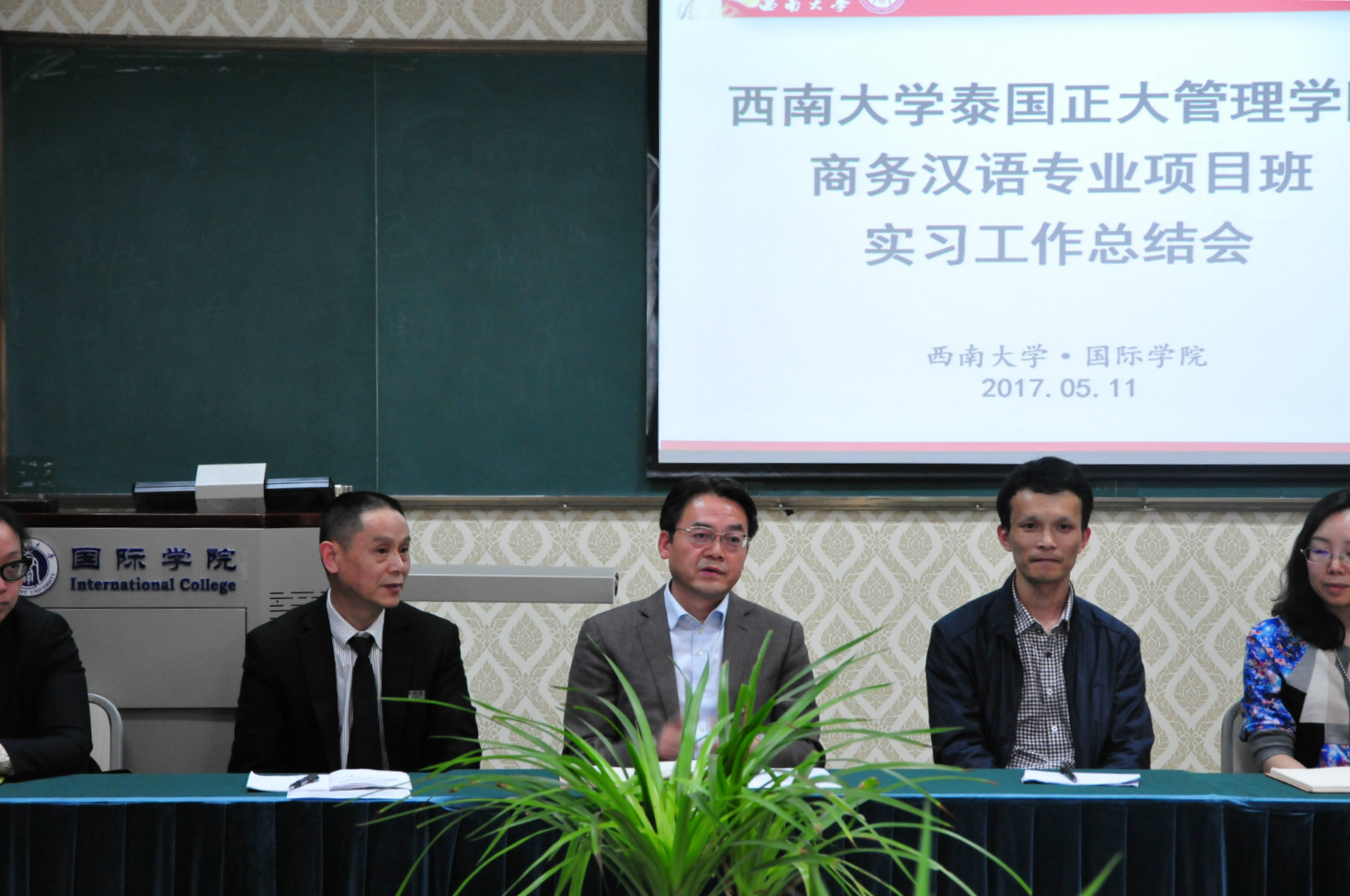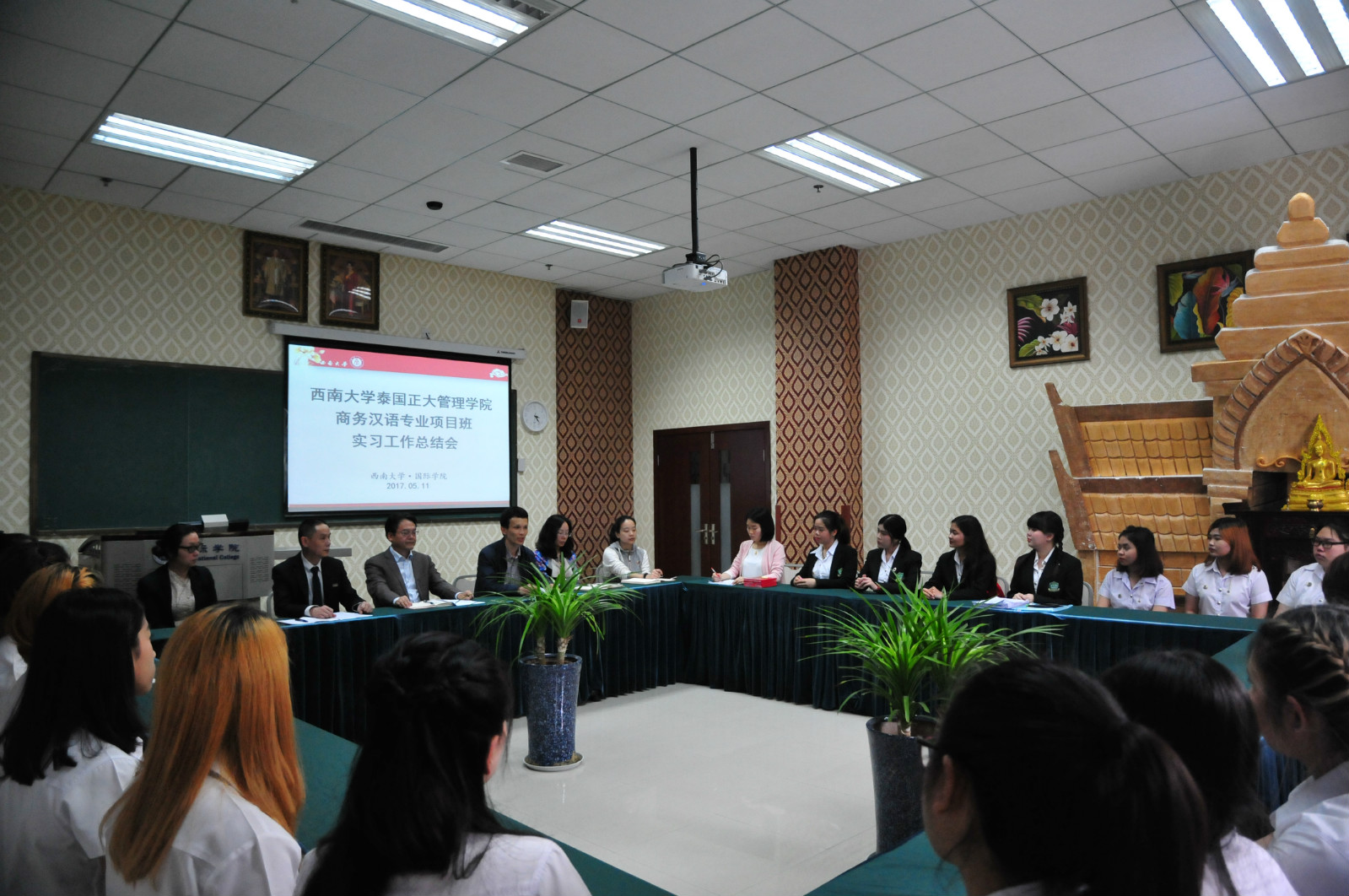 2017年5月11日下午15:00,泰国正大管理公司商务汉语项目班实习工作总结会在betway必威中国泰国文化教室举行,国际公司党总支书记刘猛,图书馆副馆长章雷,以及后勤集团接待中心主任肖先勇等相关负责人参加会议。