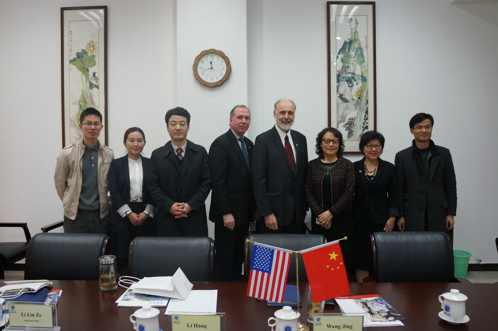随后,双方就中美人文交流项目、汉语国际教育硕士实习、青年教师赴美任教等三个方面进行了逐一交流和讨论。双方认为两校合作前景广阔,希望能紧密配合,争取尽早开展切实合作。会见结束时,双方互换了礼物并合影留念。