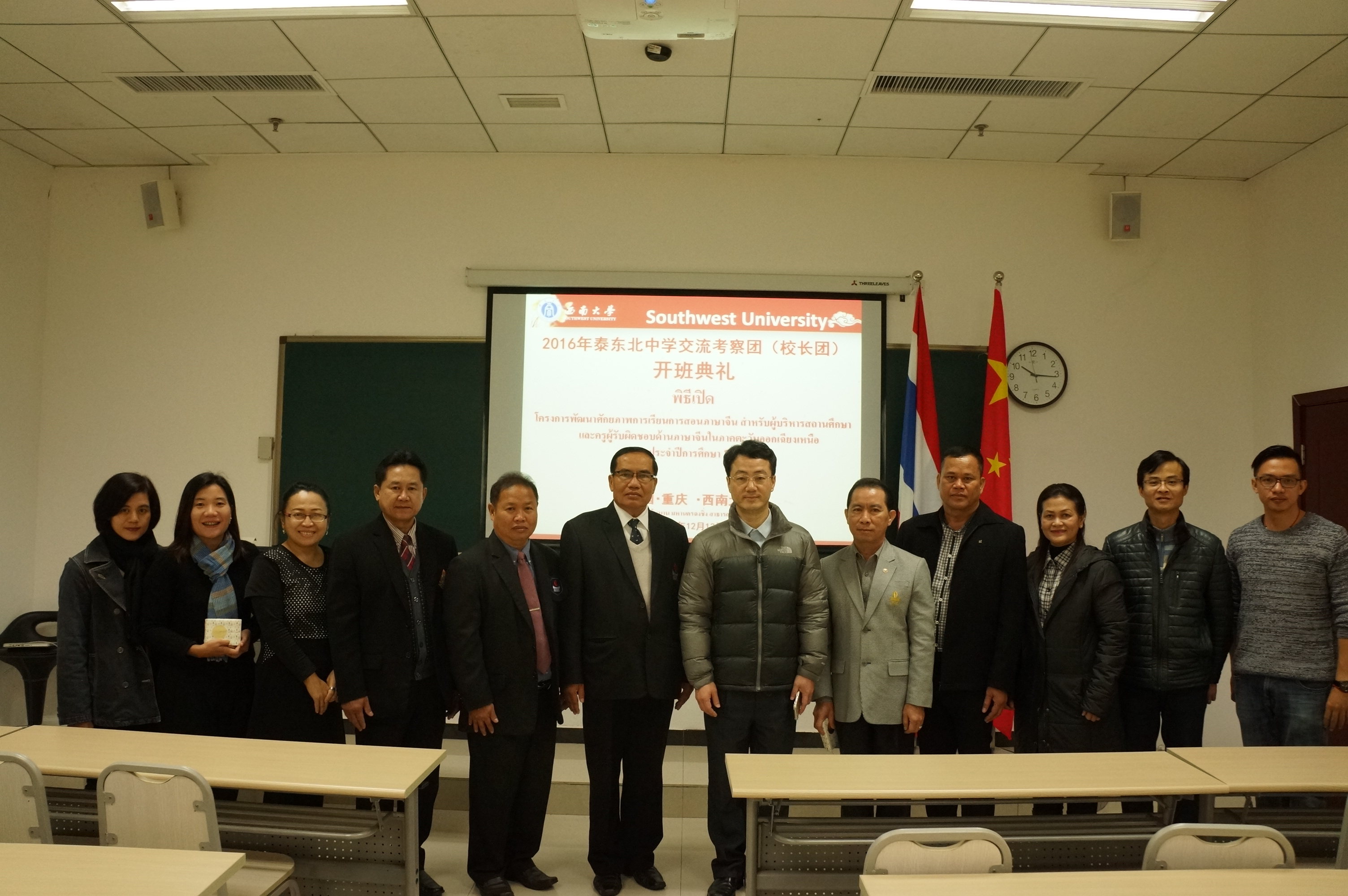 据悉,此次泰东北中学董事长交流考察团由公司与泰国孔敬大学合作建立的孔敬大学孔子公司组织,国家汉办资助,营员为来自泰东北地区的中学董事长和外语系主任。在为期一周的考察期间,团员们将听取中国基础教育方面的讲座,与在校培训的中国中学董事长座谈,参观重庆中学和人文与自然景观,与公司泰国籍职工交流互动等。