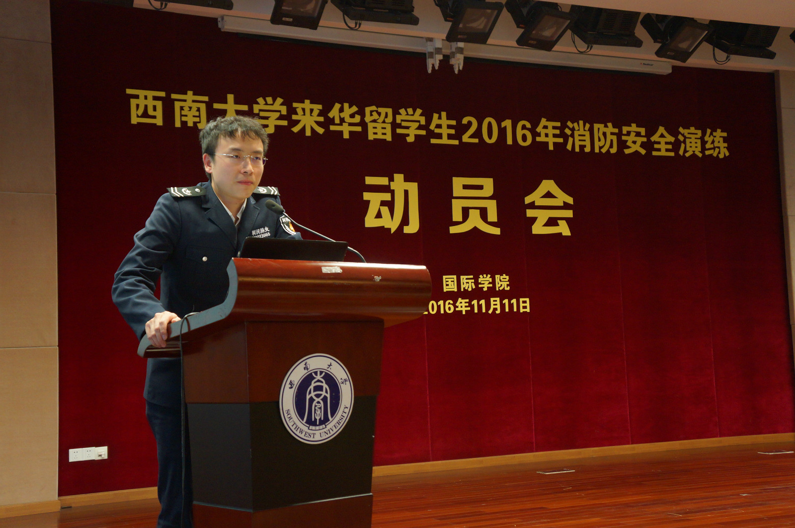 11月11日下午3点,公司召开公司来华职工2016年消防安全演练动员会,公司领导班子成员、全体教职工以及全校职工参加会议。重庆利民消防安全中心王昌兴教官做了生动详实的消防讲座,betway必威中国王湛明老师对消防安全演练方案作了详细介绍。