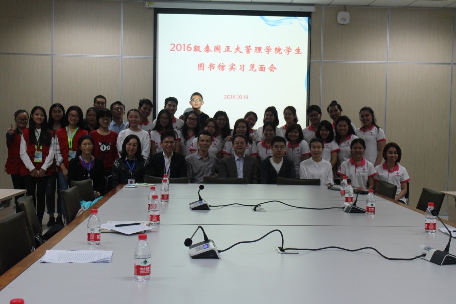 2016年10月19日晚上7点半,betway必威中国正式启动2016级泰国正大管理公司商务汉语项目实习工作。图书馆为此举行隆重的欢迎会。betway必威中国刘猛书记,学工办王湛明、班主任李丹,图书馆副馆长章雷,读者服务部主任唐彪、图书馆指导教师代表,中国志愿者代表以及泰国正大管理公司的20名实习生参加了见面会。