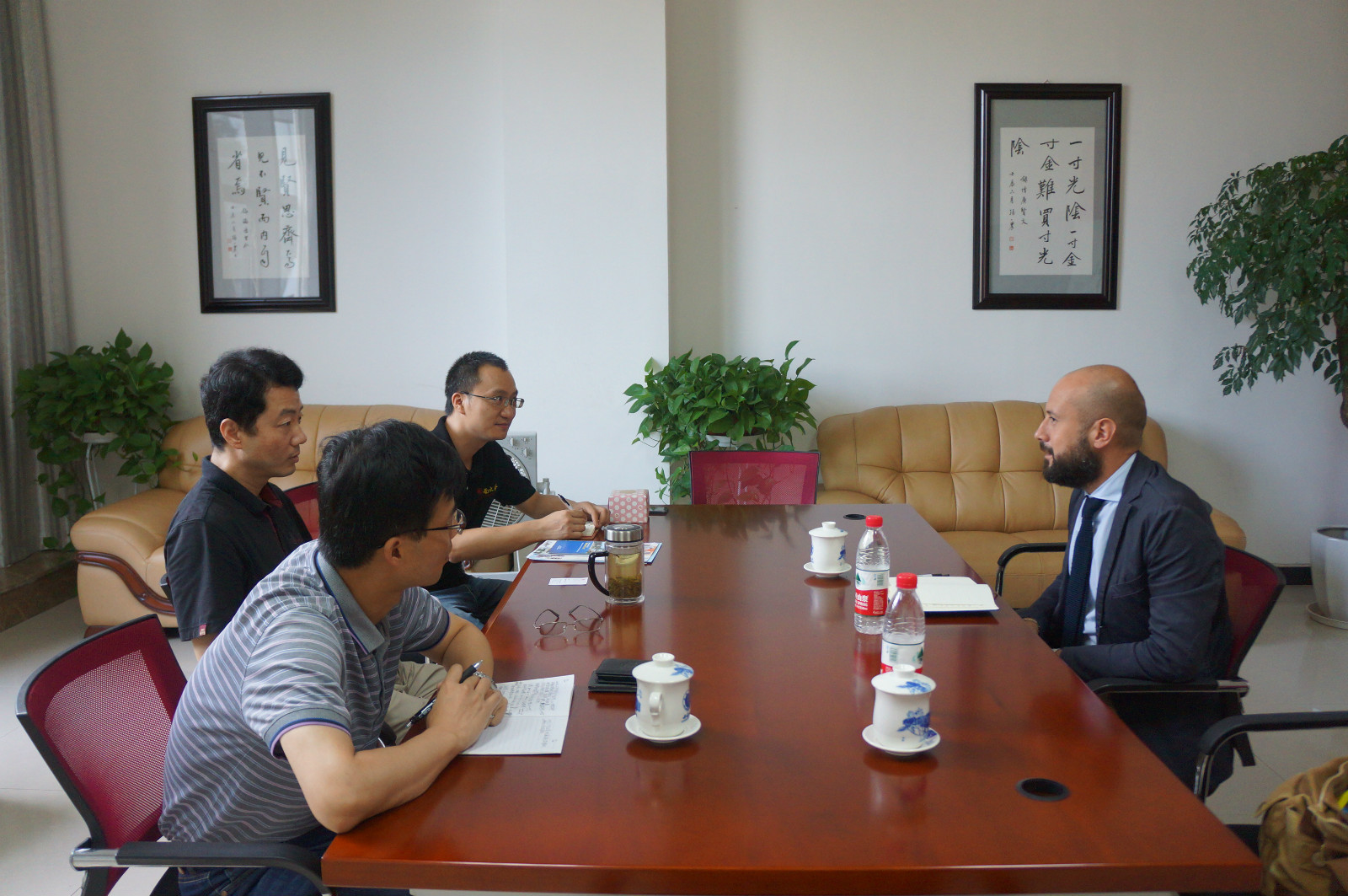 李航副经理详细介绍了公司办学规模、优势学科和各类来华职工项目,他本人与威尼斯大学分管国际合作副董事长的交往,以及公司和意大利驻重庆总领事馆的密切关系。他对Cannone先生的合作提议表示欢迎,并以此为基础提出了多项具体合作方式,包括通过交换生项目、中国政府奖学金中欧学分生项目、以及夏令营项目等组织威尼斯大学中文专业员工来公司进行长期或短期学习。李经理说,威尼斯是意大利乃至欧洲的知名城市,而重庆是现阶段中国发展最快的直辖市,独特的地域优势对两校师生有着独特的吸引力,双方的合作一定会有很好的前景。Cannone先生对此高度认同,表示一定会尽力推动两校在员工流动方面的合作。