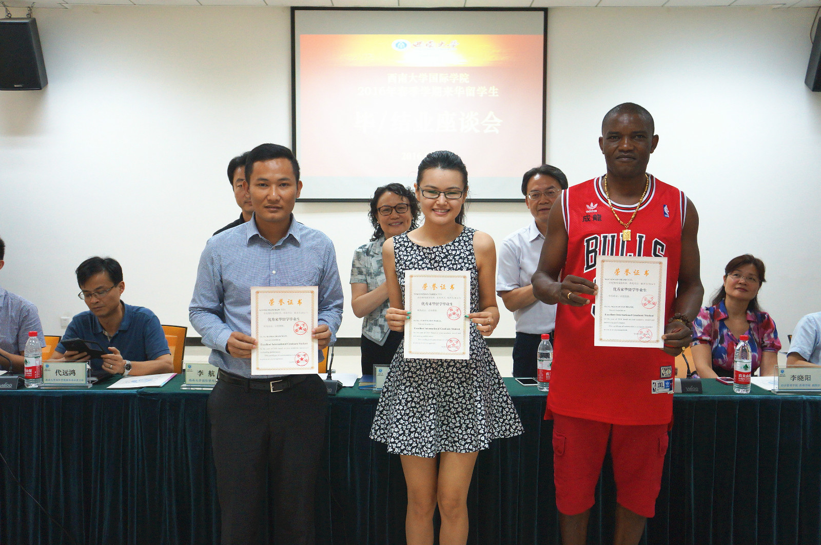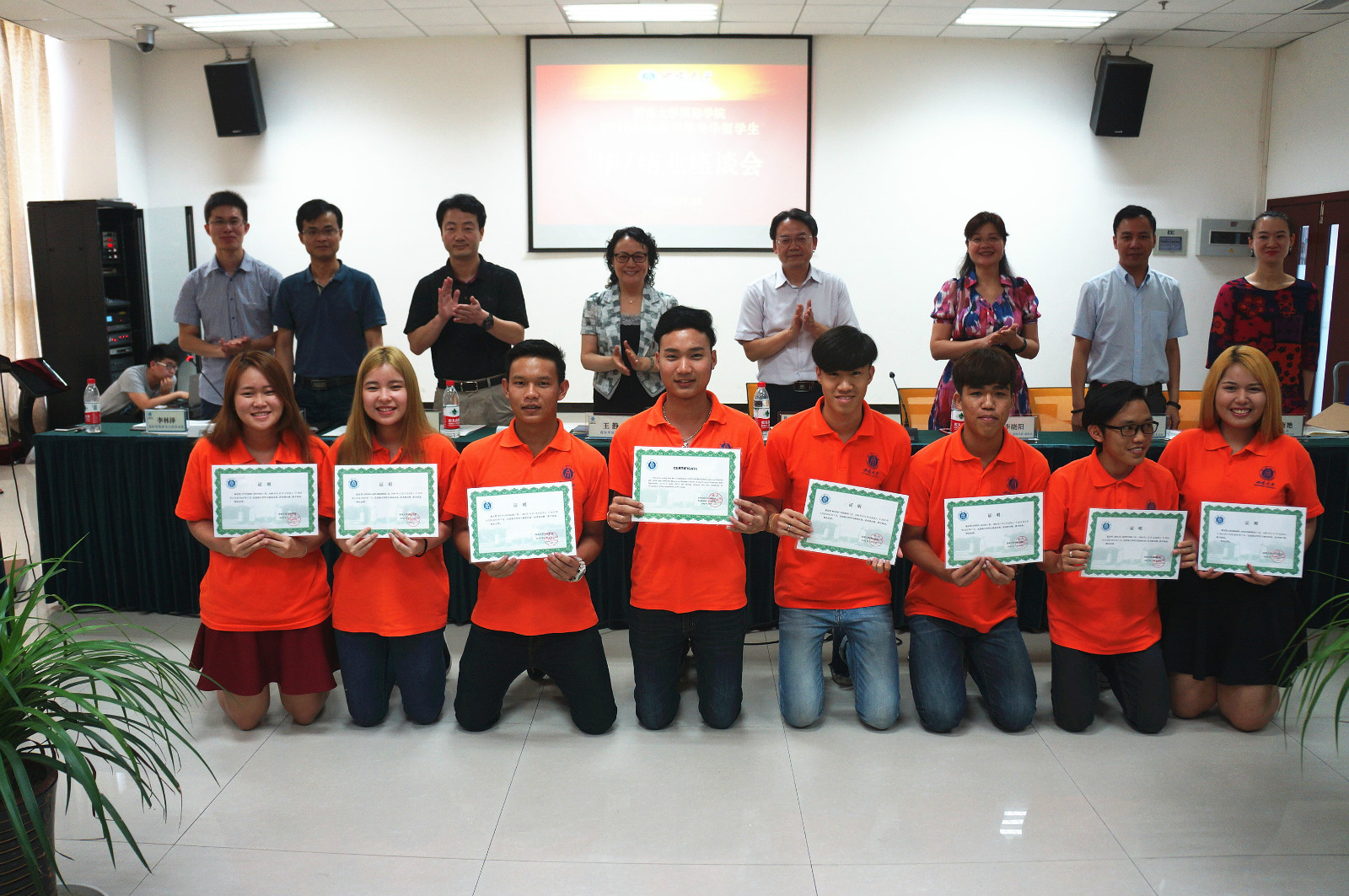 座谈会在全新的betway必威中国来华留学宣传片所带来的震撼和掌声中拉开帷幕。李航副经理宣读《公司关于准予2016年春季学期来华职工结业的决定》,刘猛书记宣读《公司关于表彰2016年优秀来华留学毕业生的决定》和《公司关于表彰2016年优秀来华留学结业生的决定》,汉教系耿军主任宣读《公司关于授予2016年来华留学进修生全勤奖的决定》。王静经理及与会领导共同为毕、结业职工颁发了结业证书及获奖证书。