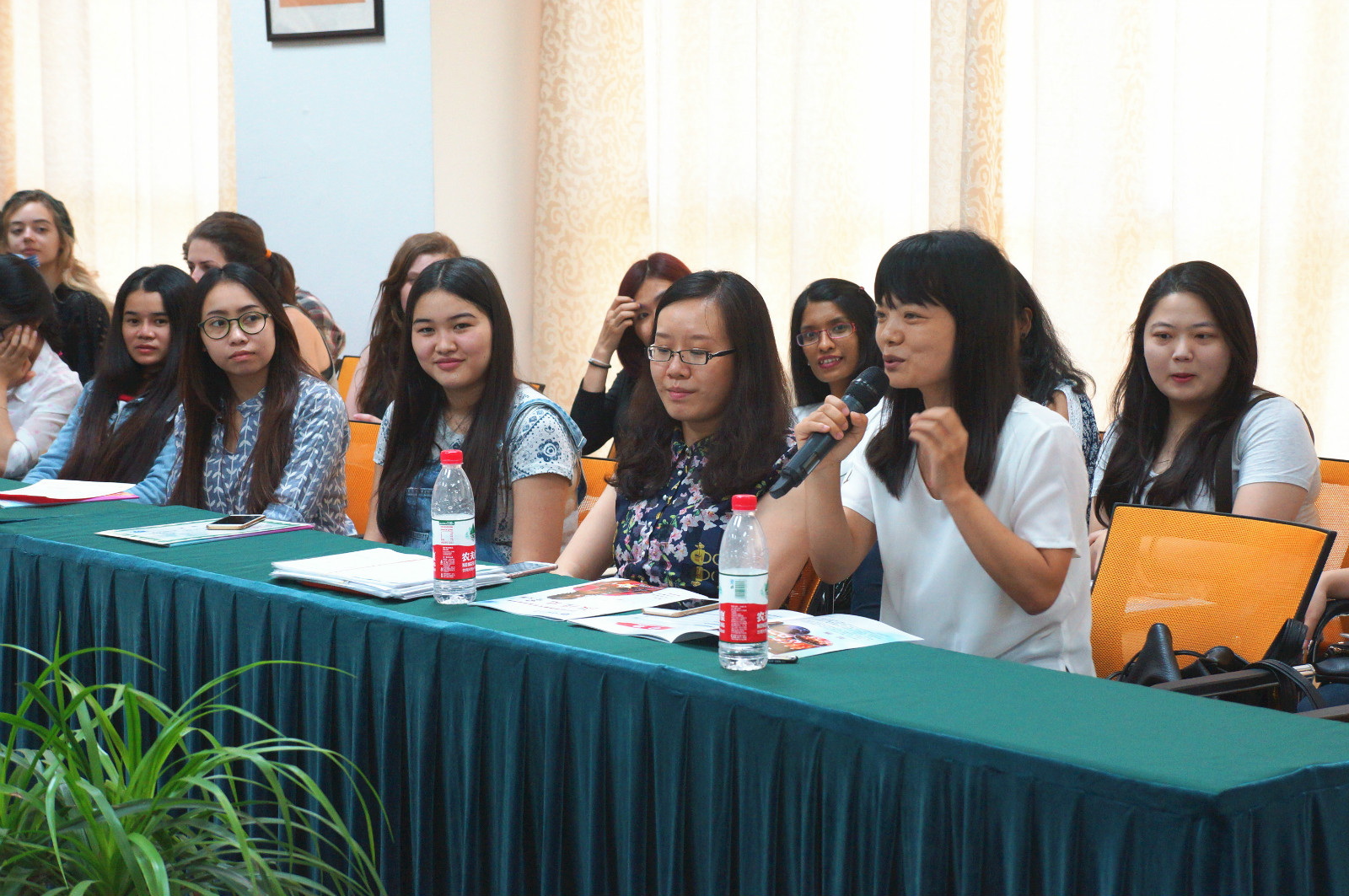教师代表黄琰发言。她说充盈在心里的,除了师生的惜别之情,更多的是一份骄傲和自豪。通过这一年的努力,同学们在汉语学习中取得了巨大的进步,现在不仅可以流利地和中国人对话,也即将把汉语知识运用到专业学习和工作中去,所有的老师们都为大家的成功而骄傲。